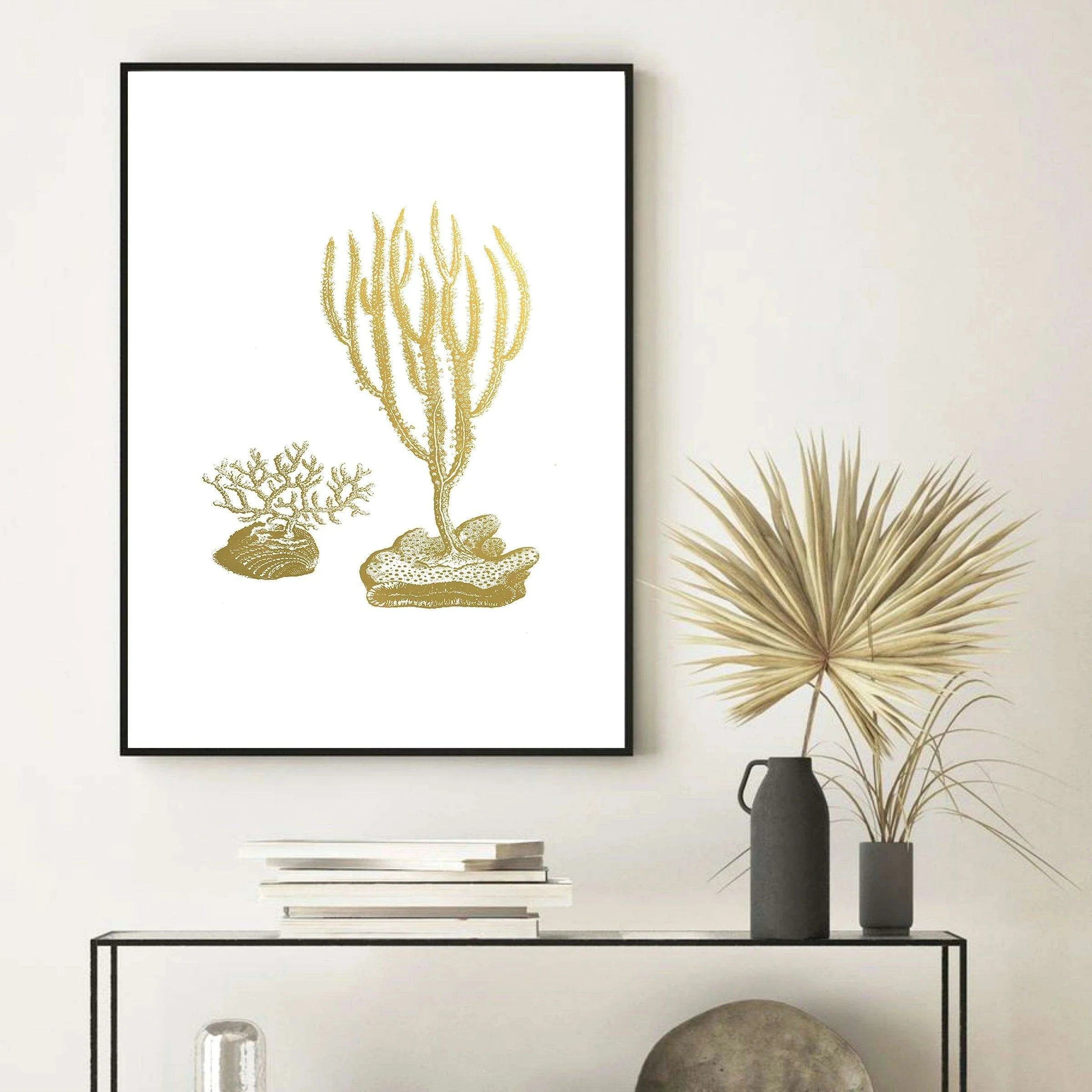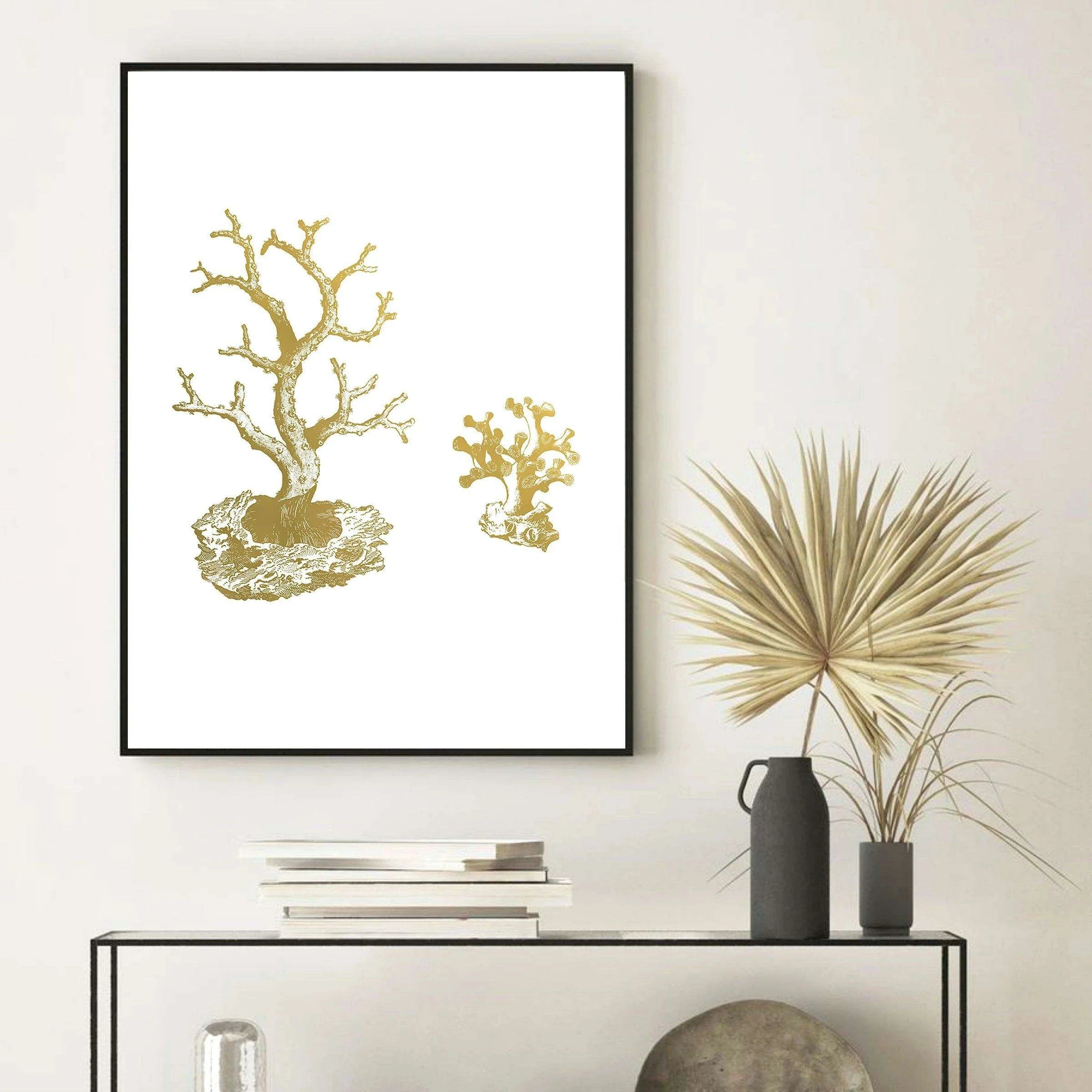 Coastal Elegance: Golden Coral Tree Giclee Art Print for Chic Home Decor