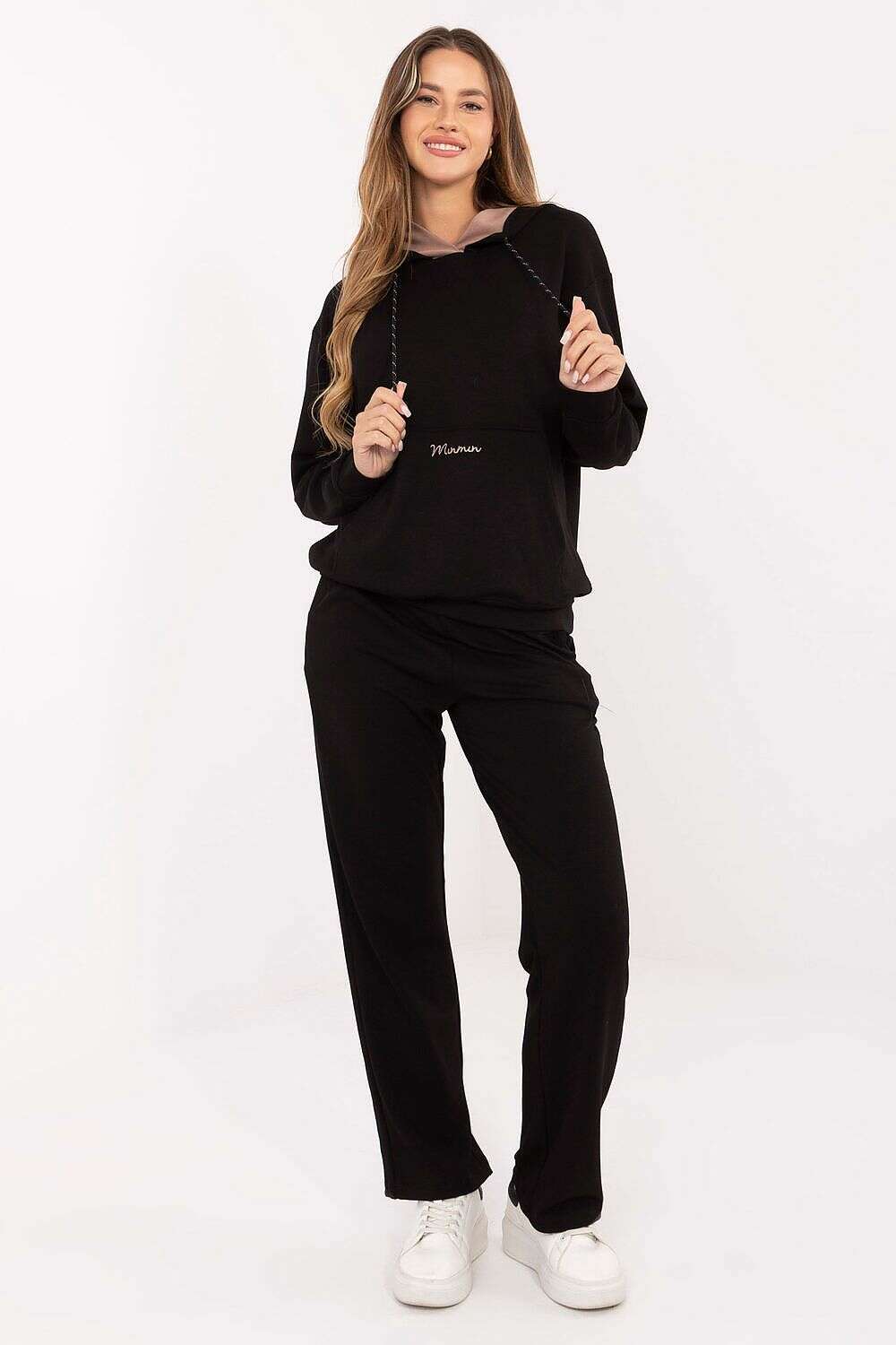 Pants details: high waist and straight legs for a flattering silhouette, with side pockets and a small embroidery at the waist that echoes the hoodie design.