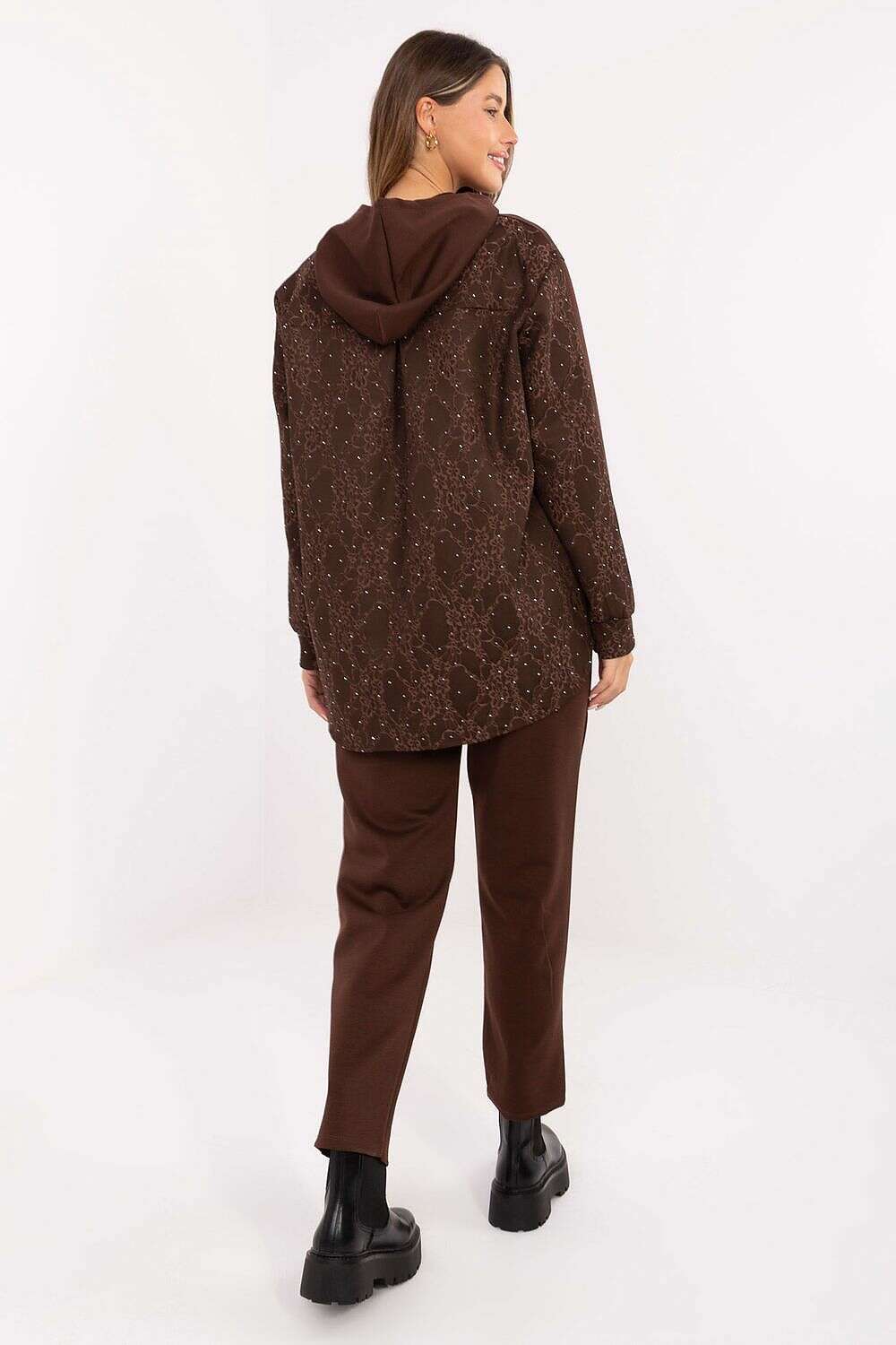 - Design Details: hoodie with decorative jet appliqué and lace inserts on the back, sleeves, and bottom front for subtle elegance.