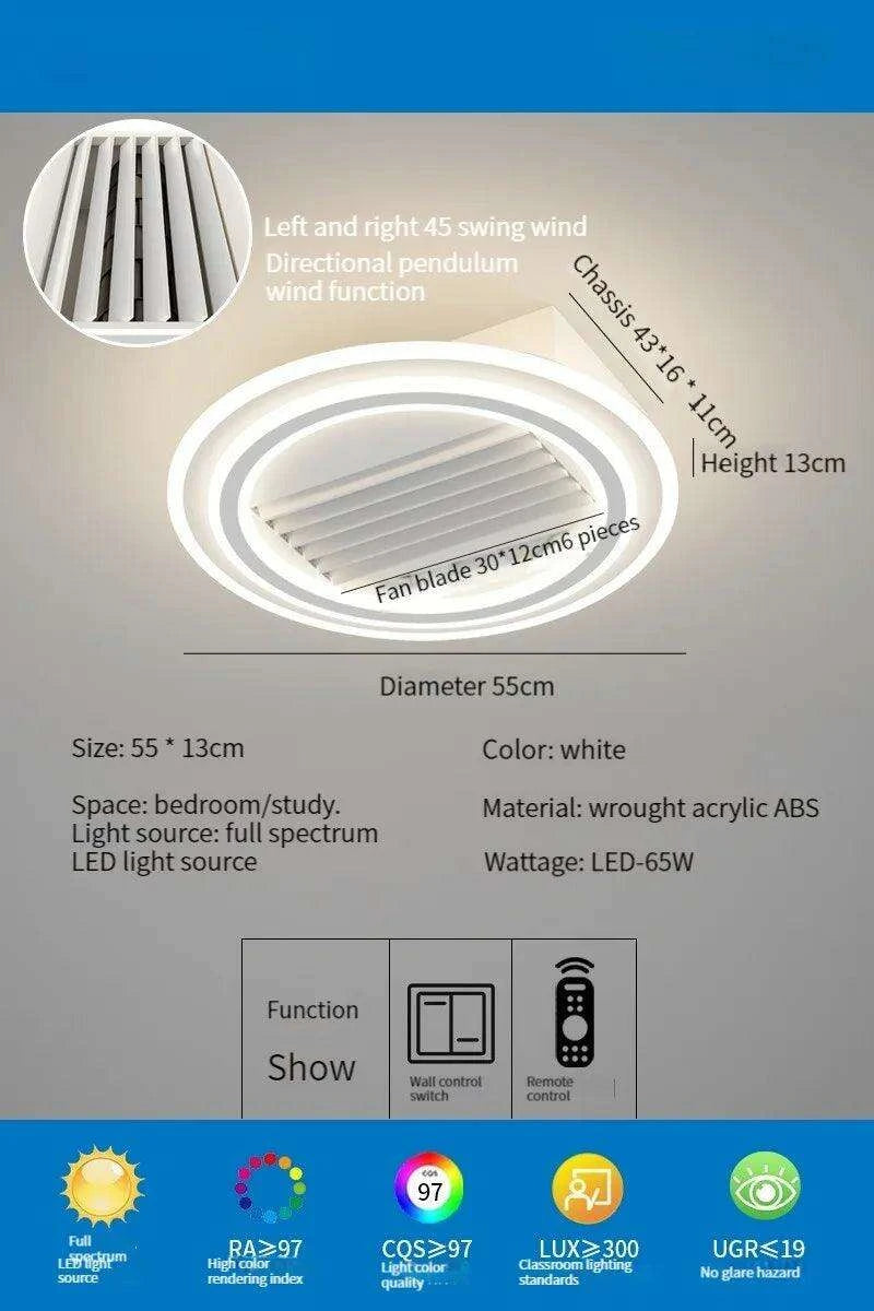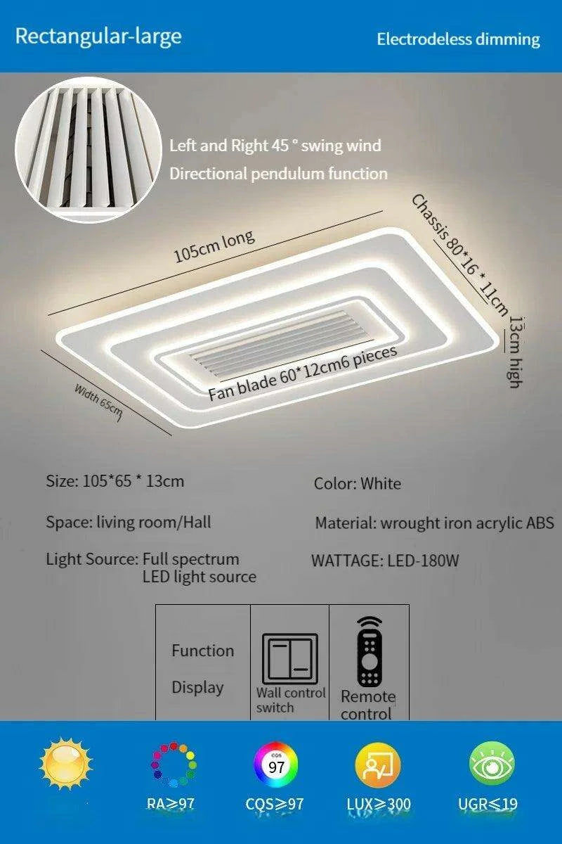 - Multi-functional: Combines the functionalities of a fan, light, and remote control into a single, stylish unit.