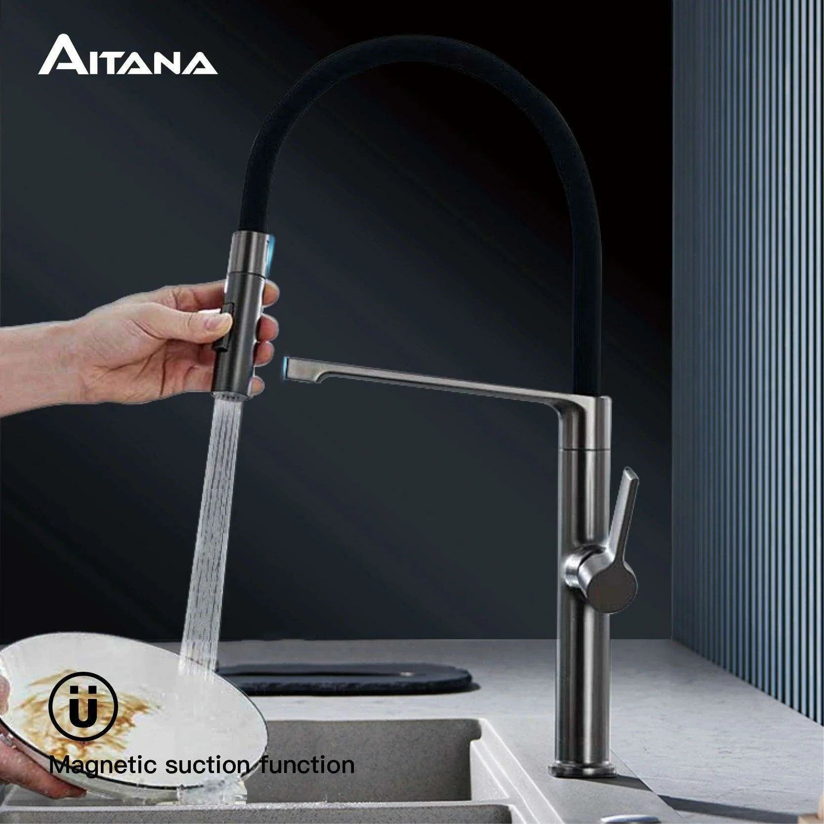 Sleek Gunmetal Gray Kitchen Faucet with Magnetic Docking, Easy Single Handle Control for Hot & Cold Water