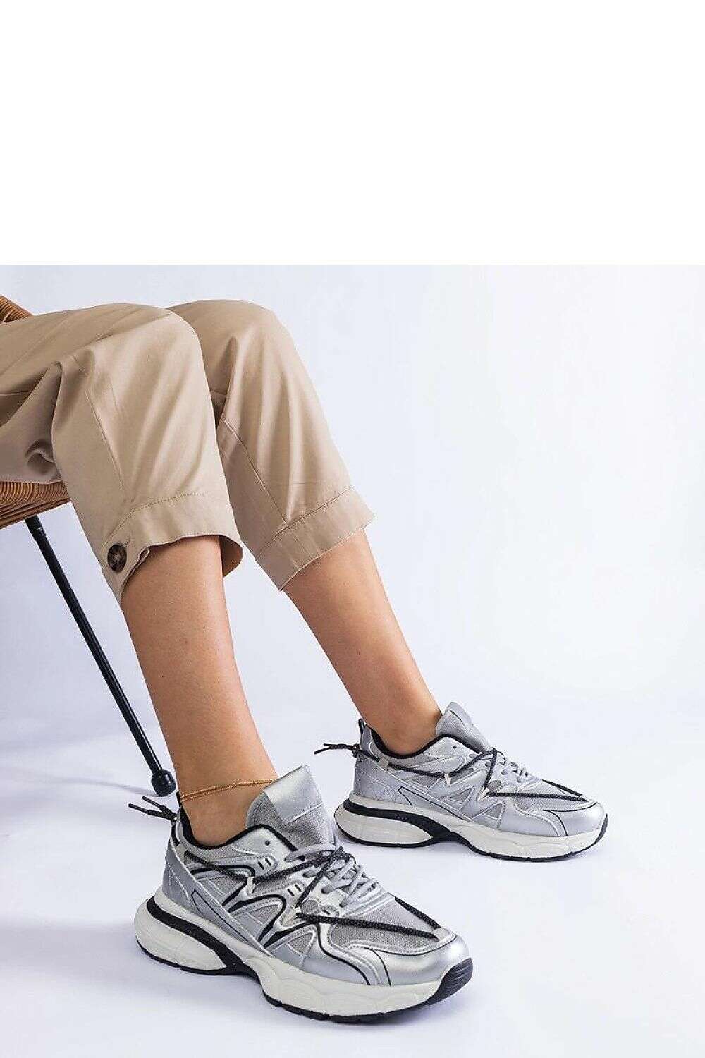 Elegant silver women's sneakers with a massive sole by Colunga Hurtado are the perfect choice for women who value comfort and style. Made of high-quality synthetic leather, they provide not only comfort but also a fashionable look. The laced closure ensures a perfect fit to the foot, and the black rubber sole adds a sporty character to the sneakers. Thanks to them, every outfit will take on a new dimension!