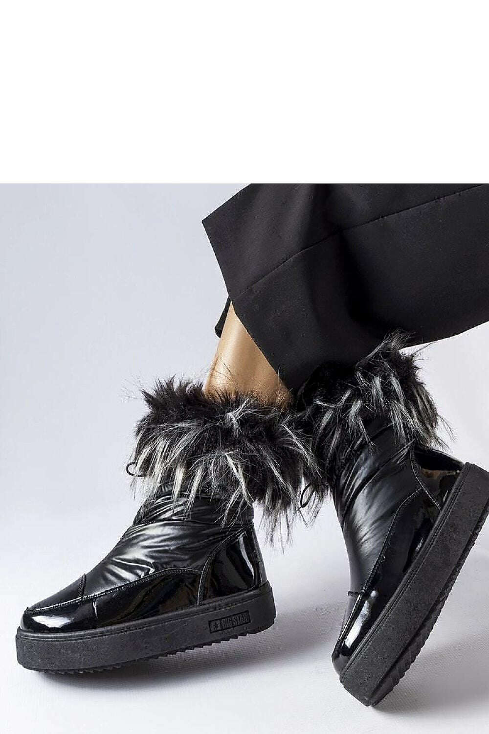 Black insulated snow boots MM274379 are the perfect footwear for women who appreciate both functionality and a trendy look. The lacquered finish adds elegance to them, and the high uppers provide protection against weather conditions. The round toe gives them a modern look, and the outer material made of eco-leather guarantees durability and comfort. The insulation makes the shoes ideal for winter days, and the rubber sole ensures good grip. The slip-on closure makes them easy to put on. These black snow boots will definitely attract attention with their unique design and will be a reliable companion during walks or mountain trips in difficult weather conditions. Perfect for autumn and winter.