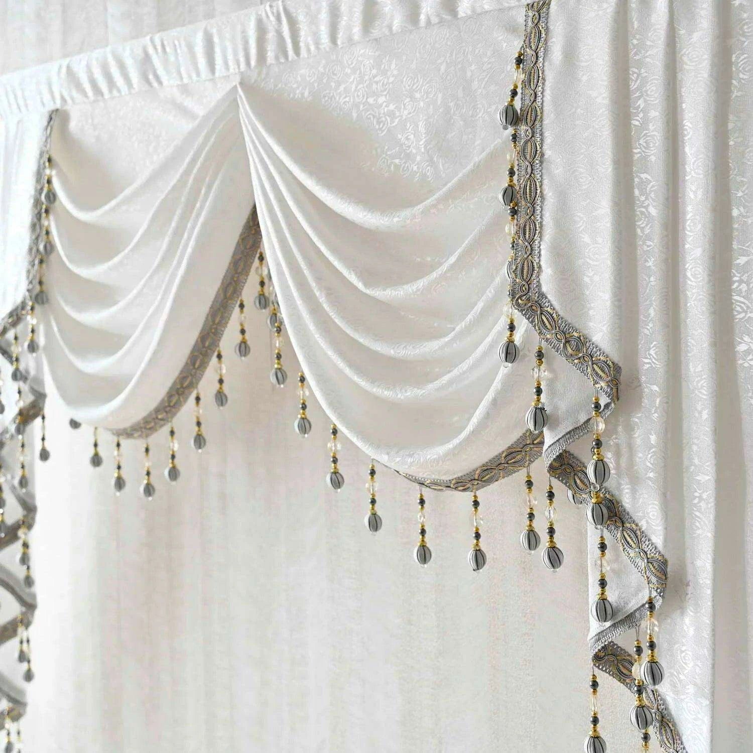 Transform your interiors with the Chic Gray Beaded Waterfall Swag Valance, an exquisite window treatment that exudes a touch of European elegance. Designed to enhance your home décor, this stunning valance adds a sophisticated flair to any room.