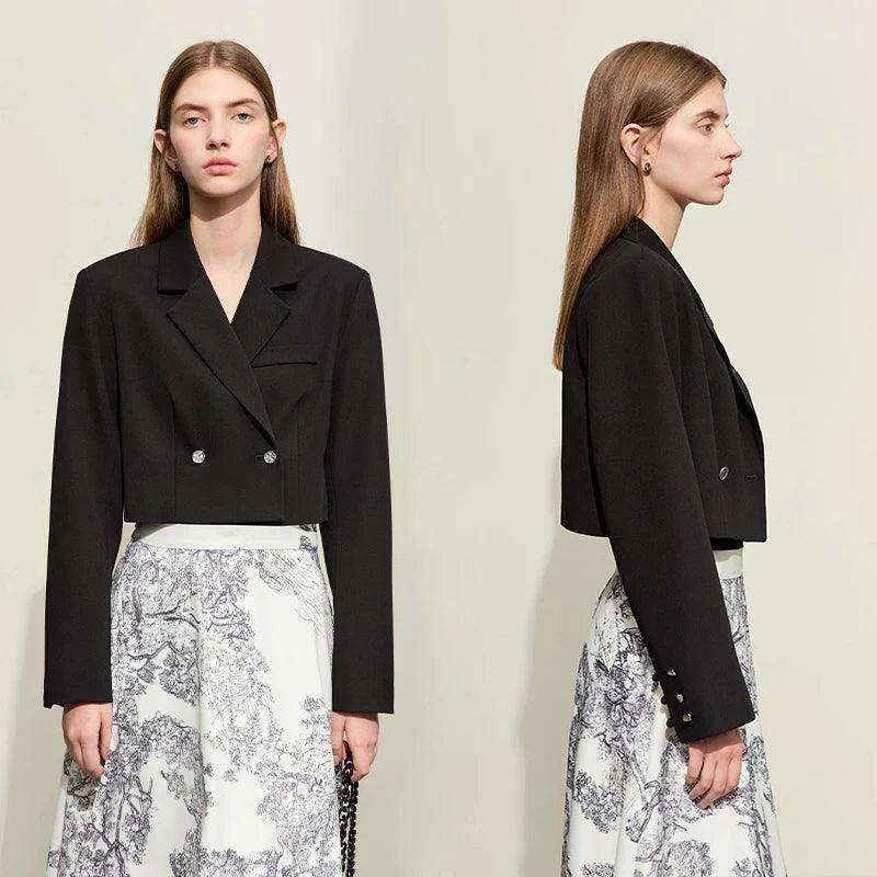 Sophisticated Spring Short Blazer with Structured Shoulder Pads - Chic Professional Outerwear