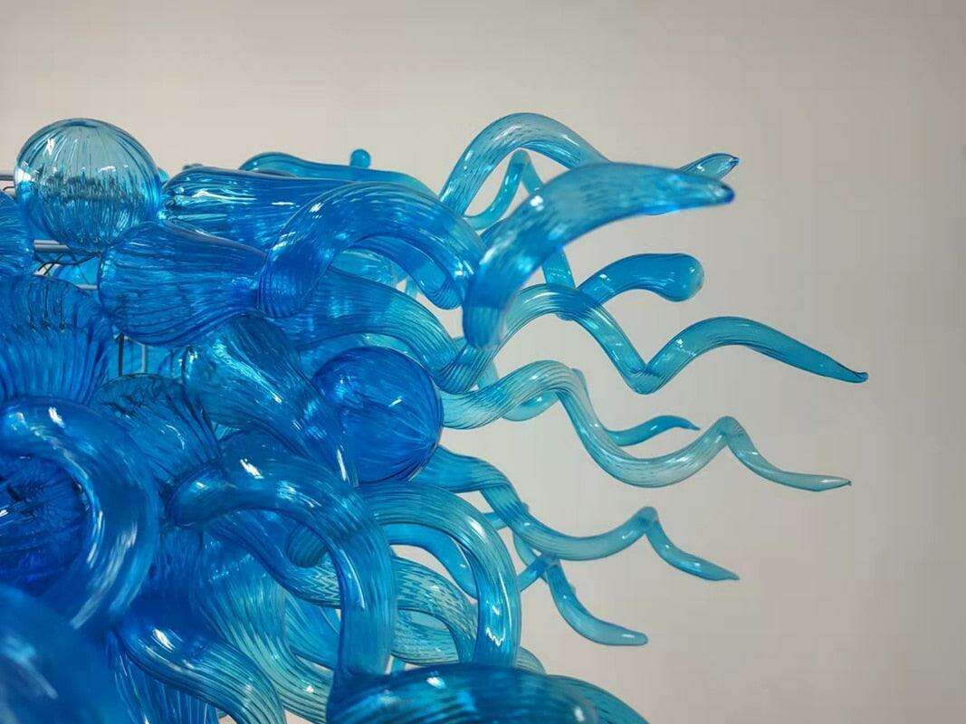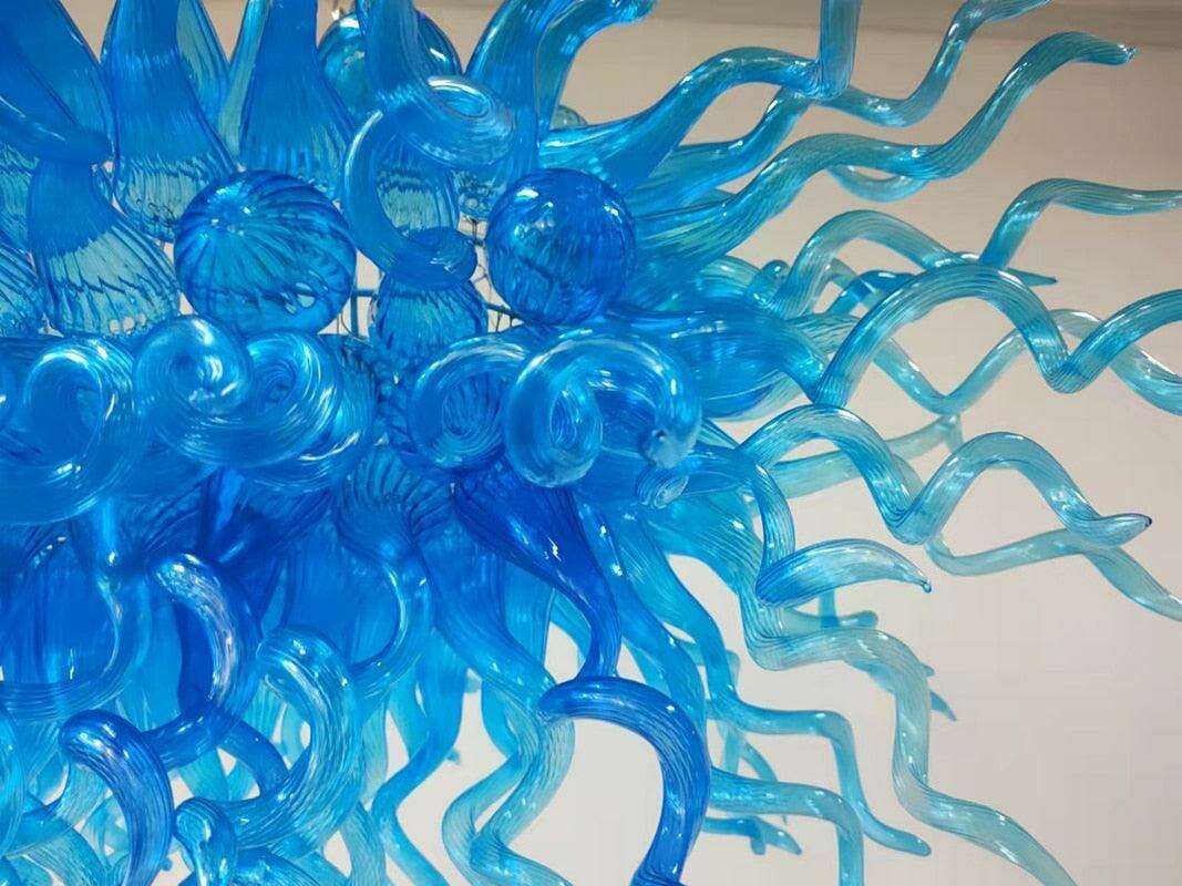 Stunning Hand-Blown Blue Glass Teardrop Chandelier - Elevate Your Home Décor