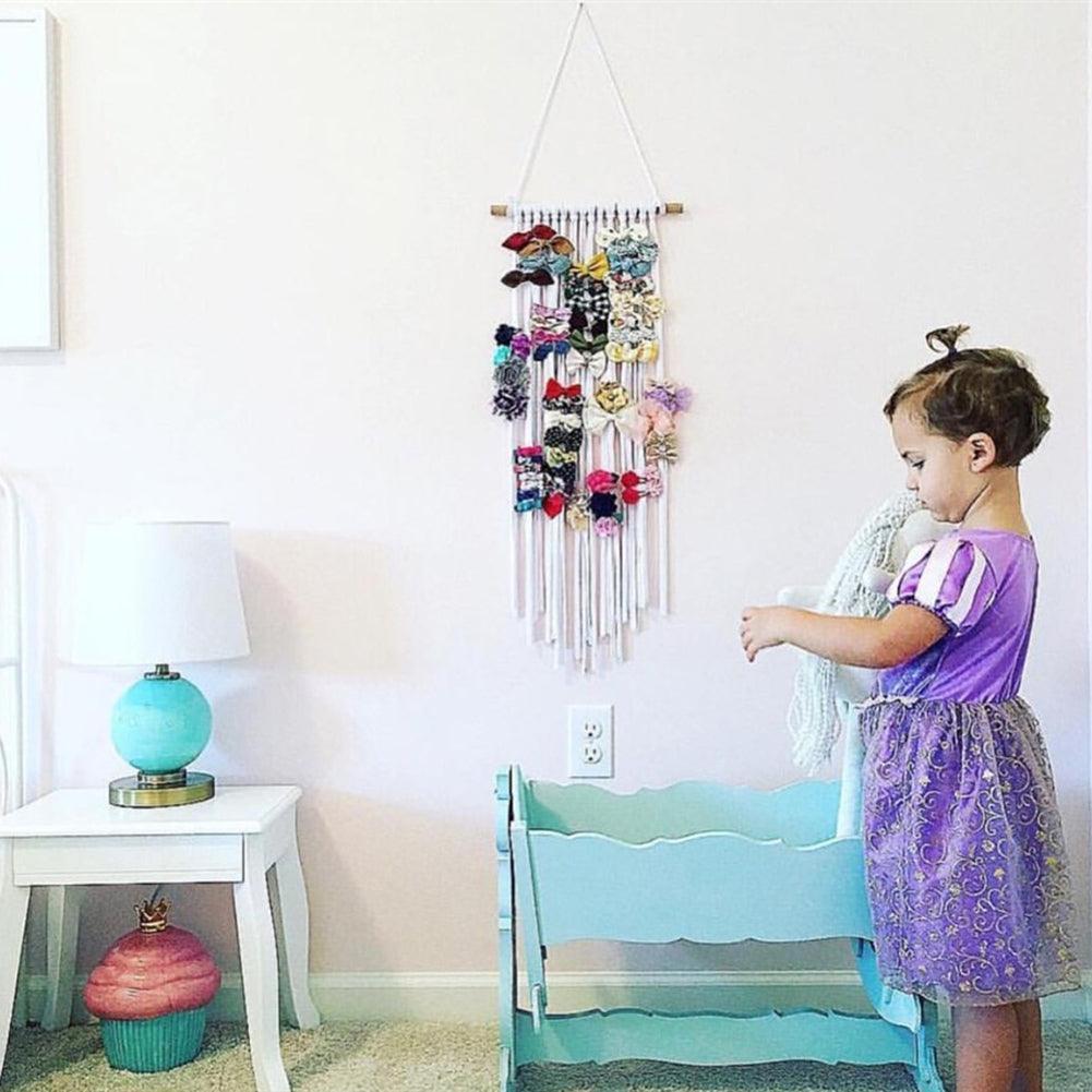 Elevate the charm of your little one's room with a bohemian or modern vibe using this versatile bow organizer that also doubles as chic wall décor. Please note that slight color variations may occur due to light and screen settings. Hair bows are not included in the package.