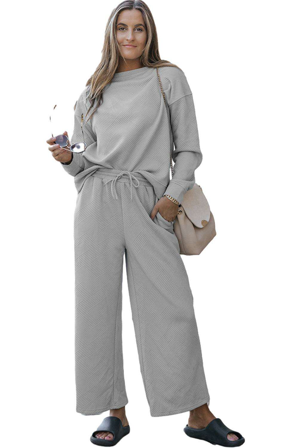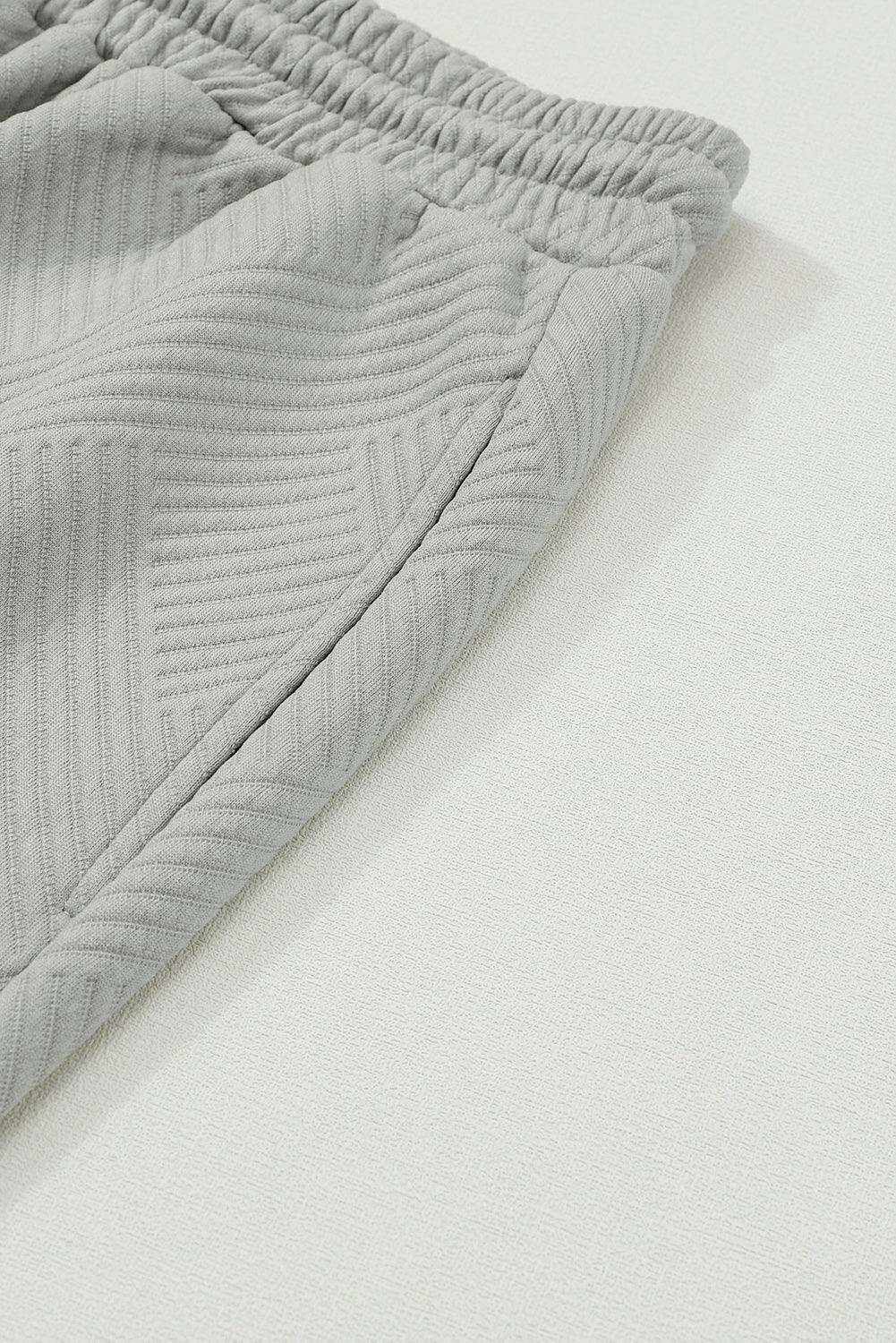 Experience the perfect blend of style and comfort with our Chic Comfort Gray Textured Lounge Set. This trendy ensemble is designed to elevate your fashion game effortlessly, allowing you to enjoy a polished and cohesive look without the stress of outfit coordination.