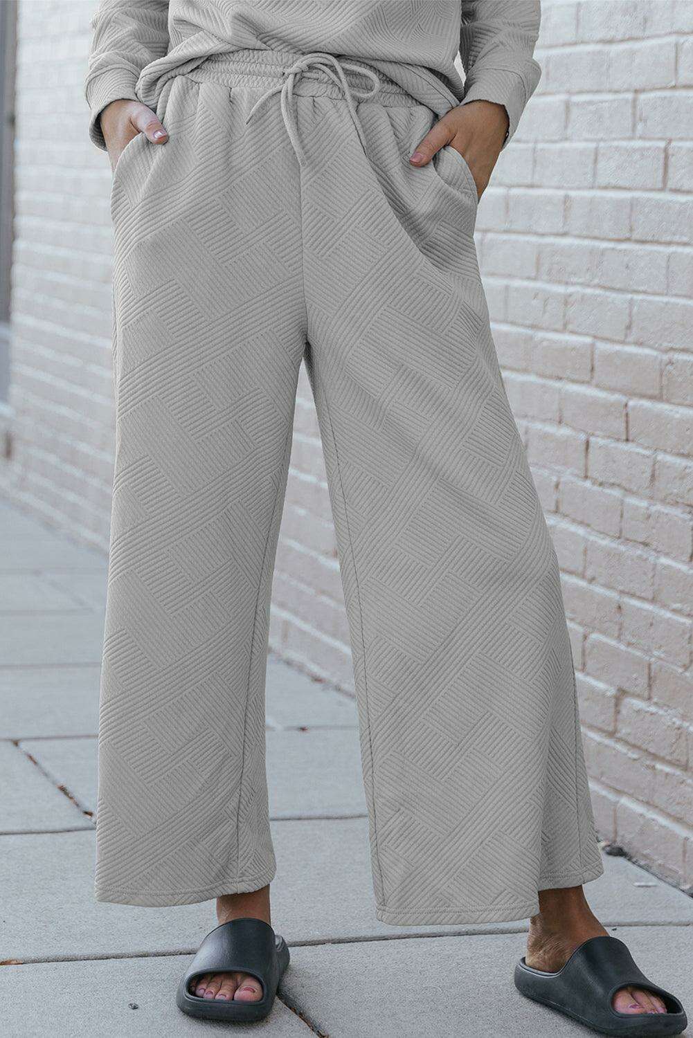 - Long-Sleeved Top and Wide-Leg Pants: This matching 2-piece set includes a stylish top and relaxed pants with drawstrings, making it easy to achieve a coordinated appearance.