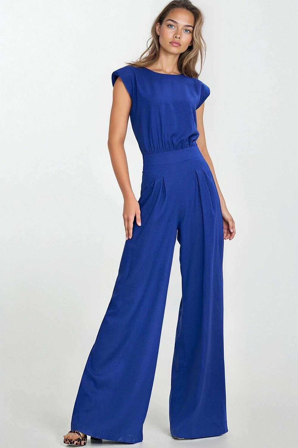 Linen Rayon Jumpsuit Model 213980 Breathable Boat Neck