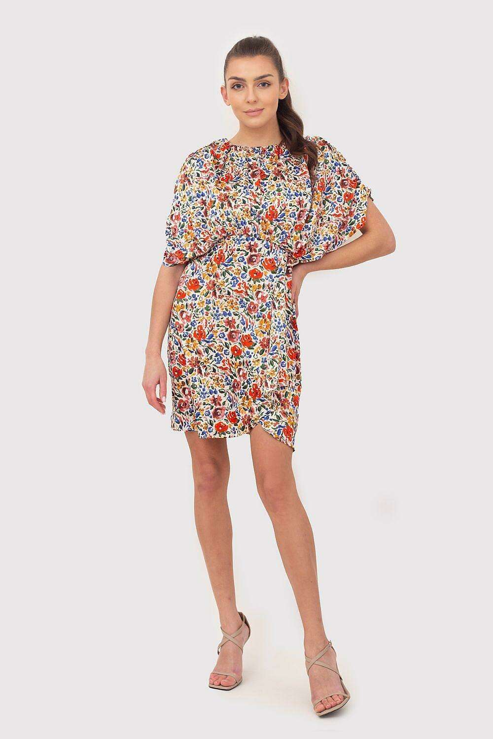 Floral Print Flowy Summer Mini Dress with Elasticized Waistband