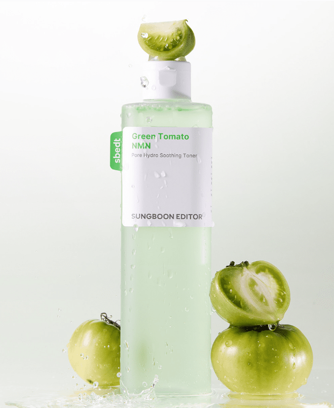 Green Tomato NMN Pore Hydration Soothing Toner is a low-irritation, hydrating toner formulated with NMN, patented green tomato extract, and panthenol. It absorbs smoothly after cleansing to soothe pores and provide deep hydration, while lightly balancing texture, inner dryness, and sebum-oil levels. Its lightweight, refreshing texture makes it suitable for daily use on sensitive and combination skin, and it can be layered or used as a toner pad pack for extra pampering.