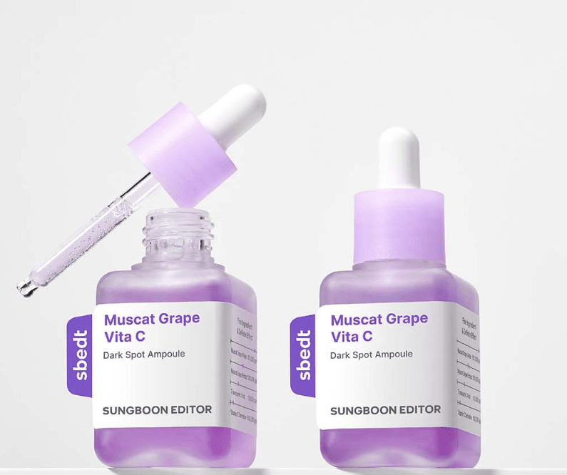 Sungboon Editor Muscat Grape Vita C Dark Spot Ampoule for Brightening is a high‑performance, low‑irritant solution designed to visibly brighten skin tone and reduce dark spots. Housed in a 40ml bottle, it combines patented wild grape extract with a stabilized vitamin C derivative (3‑O‑Ethyl Ascorbic Acid) to deliver multi‑dimensional benefits for radiant, clearer skin.
