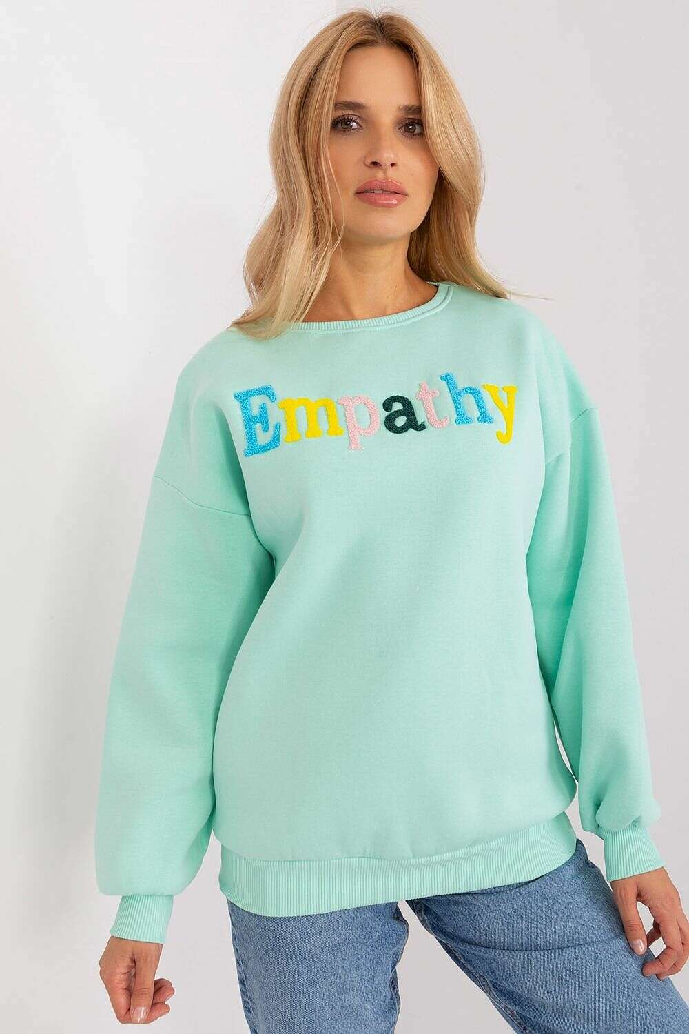 Women's sweatshirt pulled over the head is the perfect choice for fans of casual style. It stands out with a dominant pattern and a front inscription that gives it a unique character. The varied texture of the material adds an interesting, modern look. The sweatshirt made of a combination of cotton and polyester ensures comfort and durability. Standard length and long sleeves make it perfect for everyday wear. The round neckline emphasizes the classic, universal cut that fits any styling.