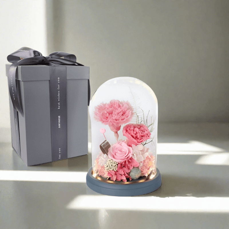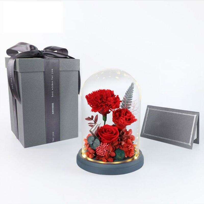 Elevate your space and celebrate love with the Eternal Beauty LED Glass Dome featuring a stunning Carnation Rose. This enchanting piece serves as a perfect romantic gift, combining elegance and everlasting beauty.