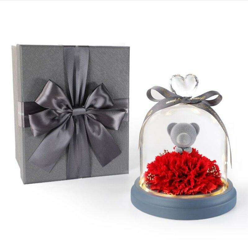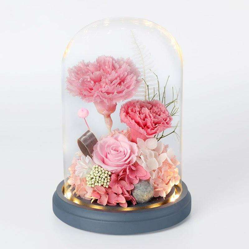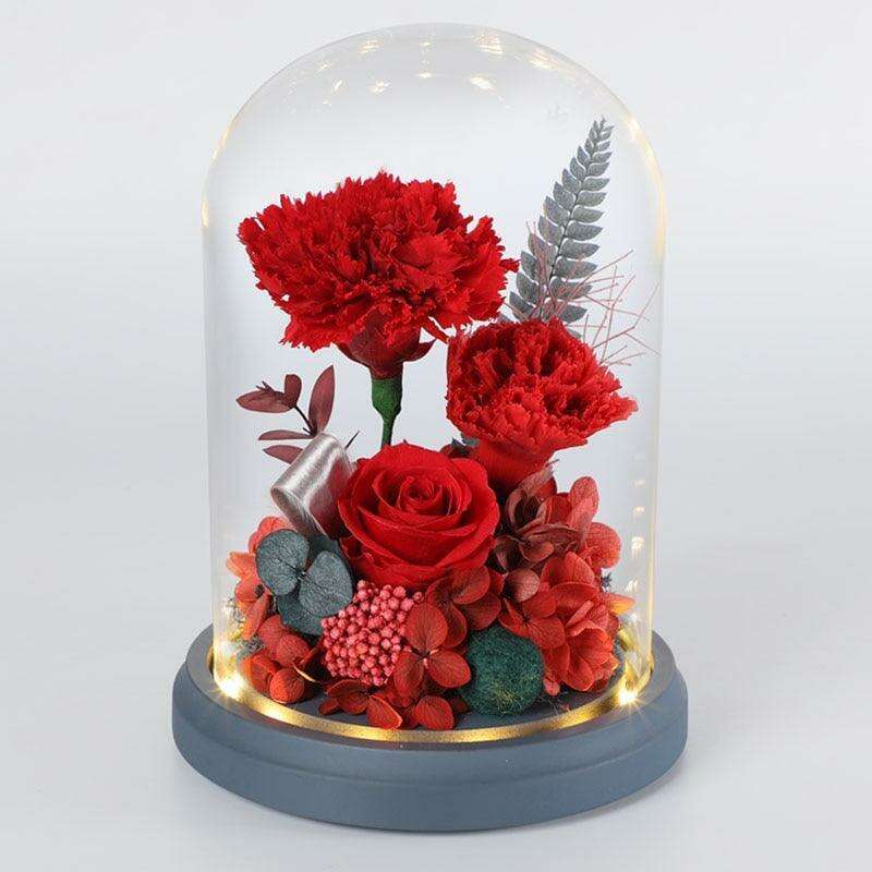 Eternal Beauty LED Glass Dome with Carnation Rose - Romantic Valentine's Day Gift for Enduring Charm