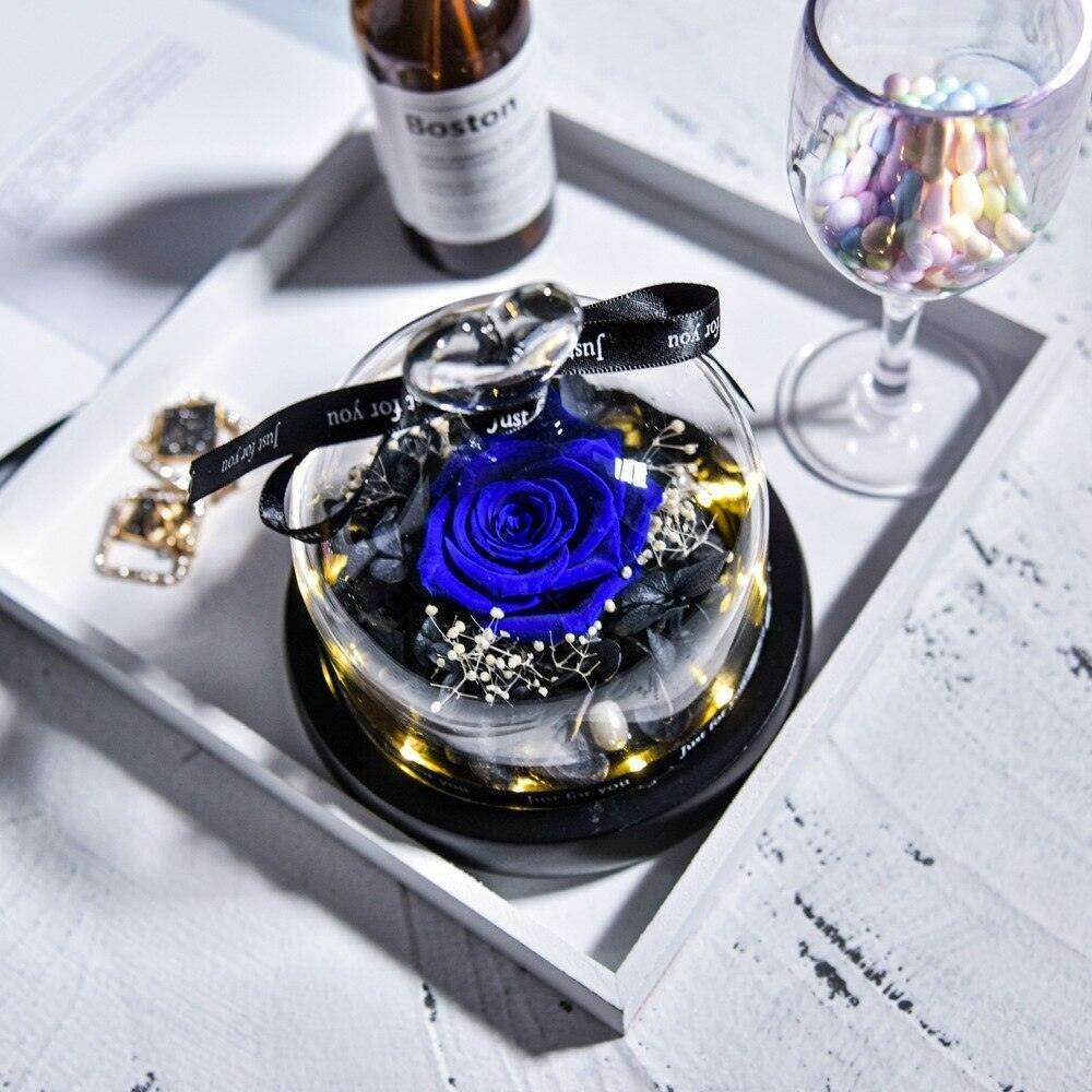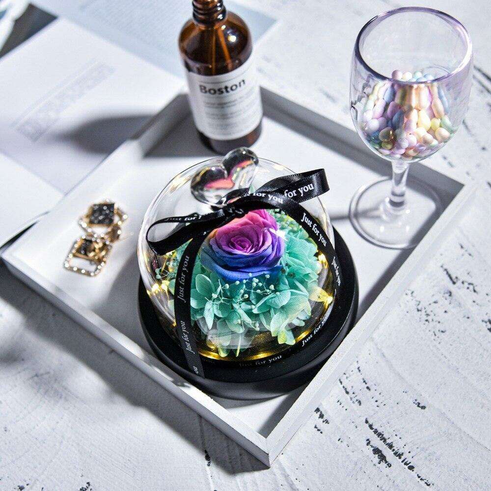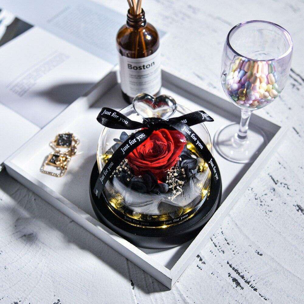 Timeless Romance: Preserved Real Rose in Illuminated Glass Dome