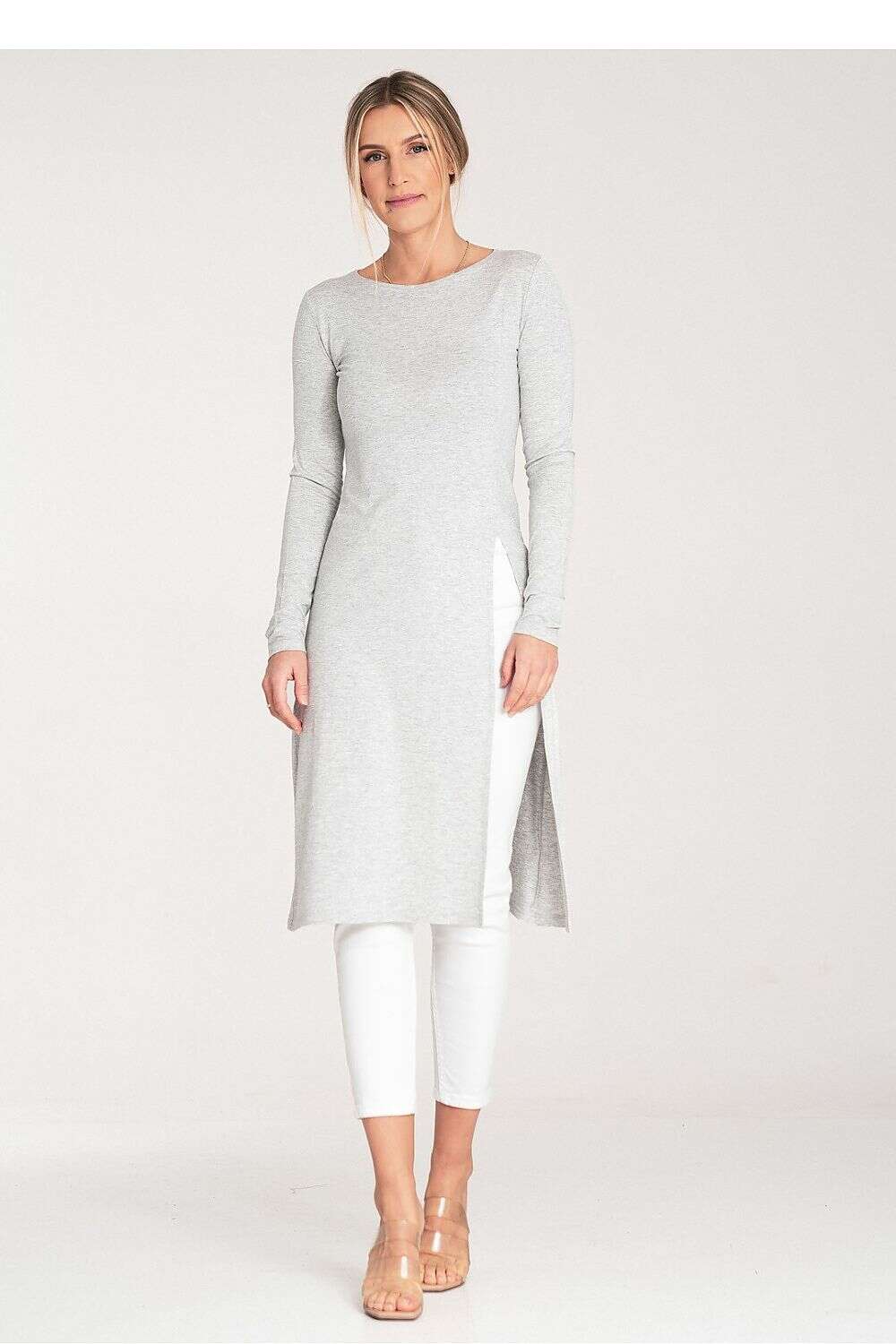 Tunic with long sleeves and a round neckline. A striking slit on the side. An ideal choice for many stylings.