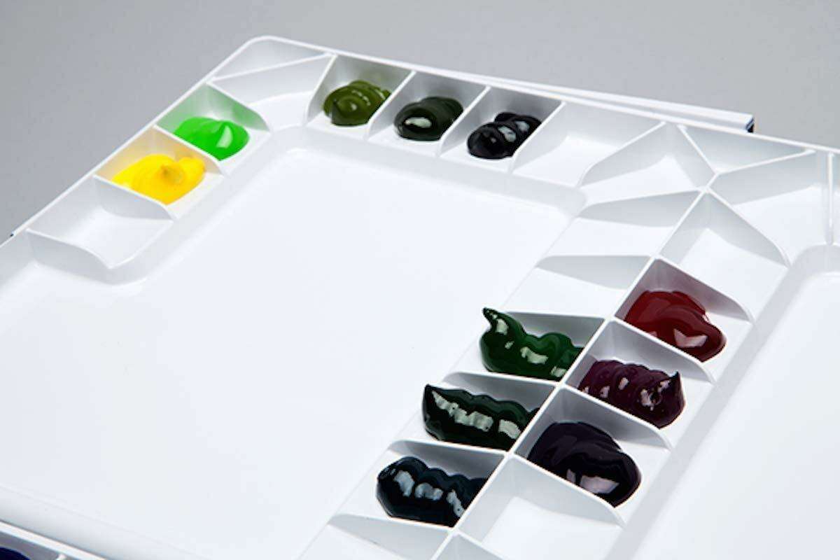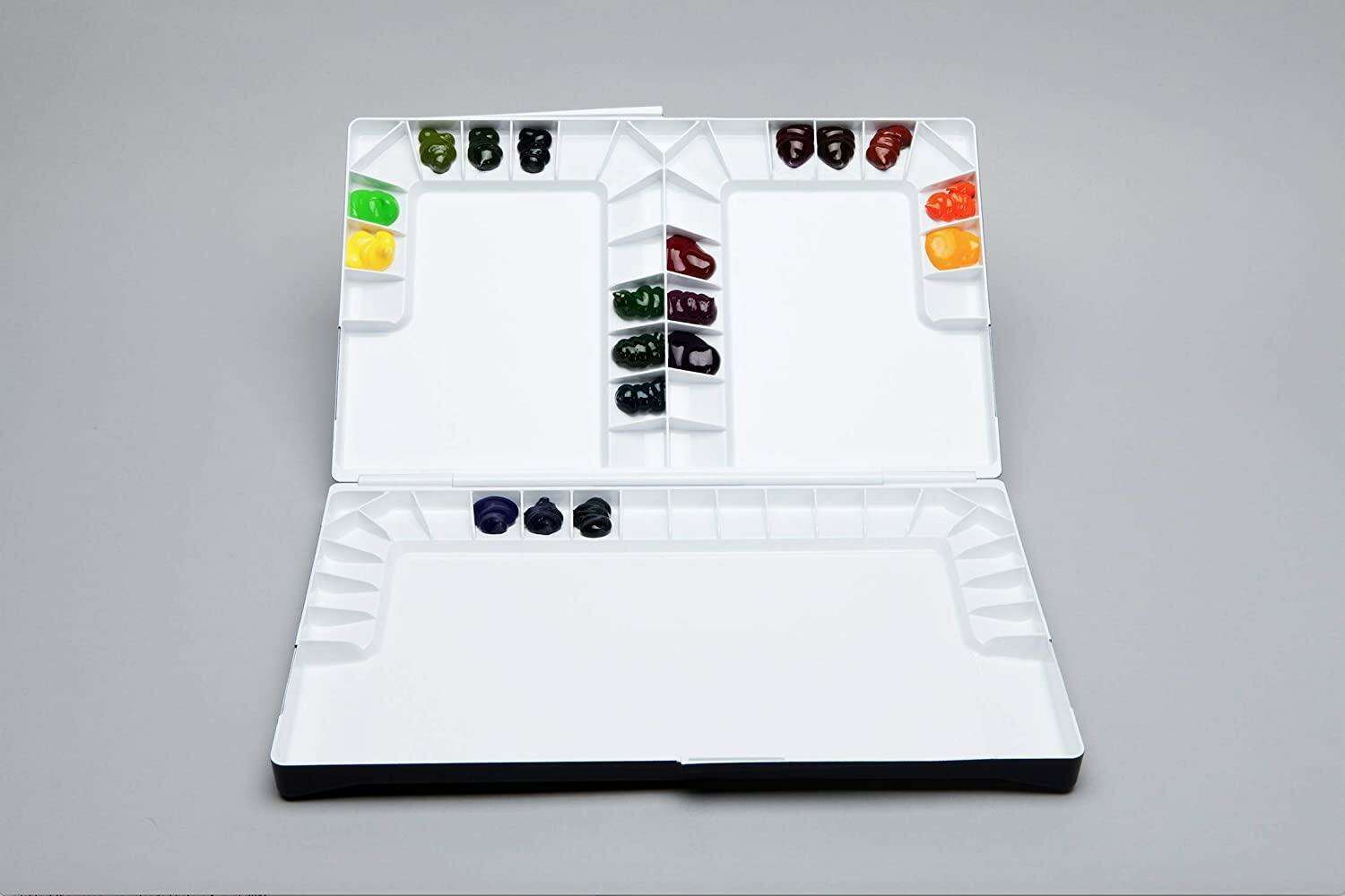 - Non-Porous White Interior: The palette's white interior ensures that colors are represented accurately and vividly, allowing your paintings to resonate with life and brilliance.