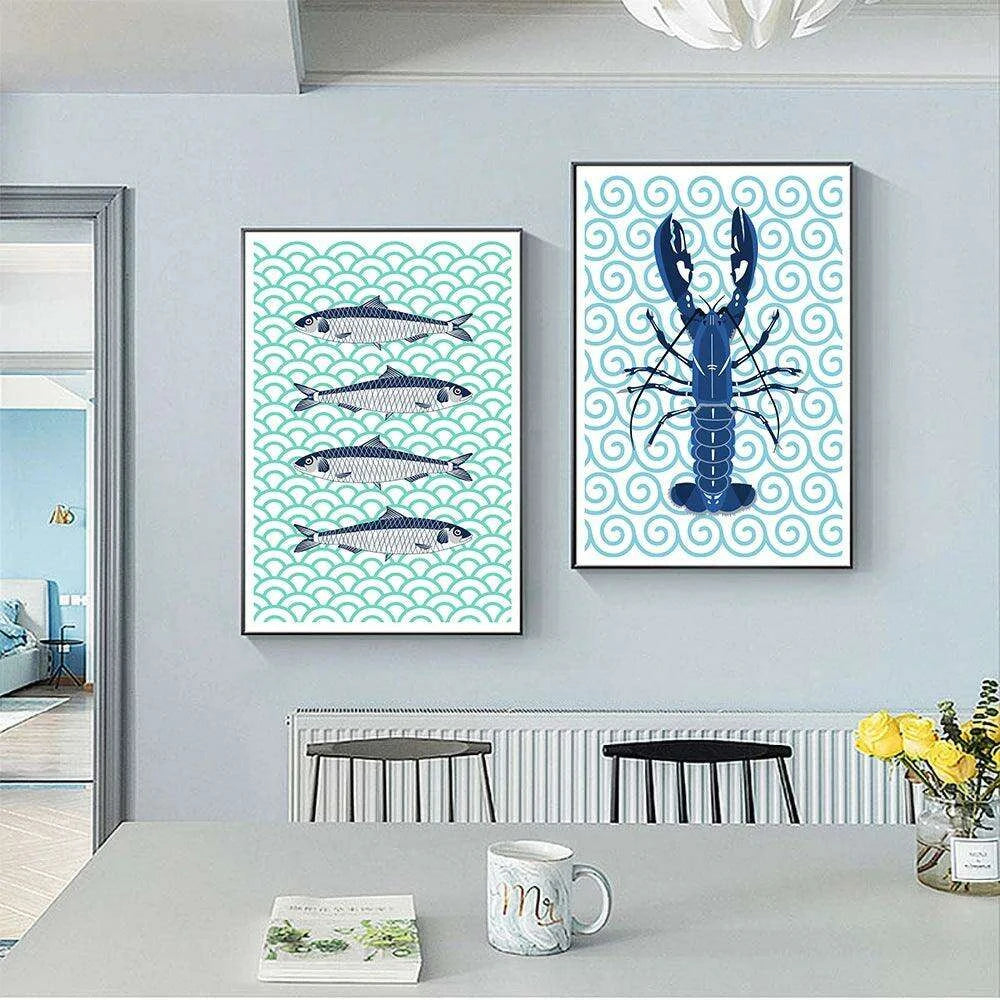 Transform your living space into a serene underwater oasis with our Coastal Underwater Life Canvas Print. This exquisite canvas art captures the mesmerizing beauty of the ocean, showcasing intricate depictions of coastal marine life including lobsters, fish, seahorses, sardines, and other enchanting sea creatures.