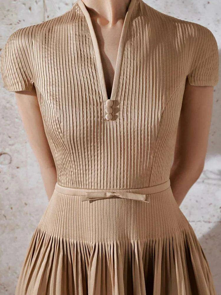 Chic V-neck Bowknot High Waist Pleated A-line Evening Dress for Women