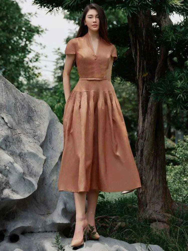 - Pleated A-line Skirt: The flowing pleated A-line skirt drapes elegantly, allowing for graceful movement—perfect for dancing the night away.