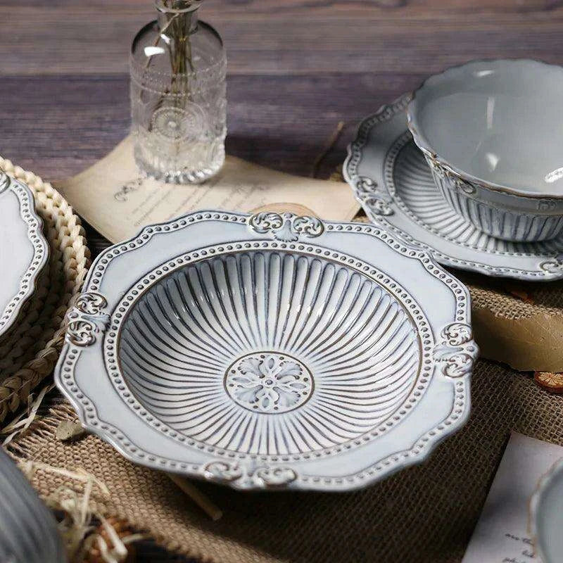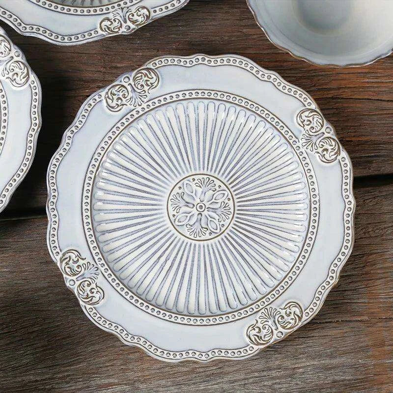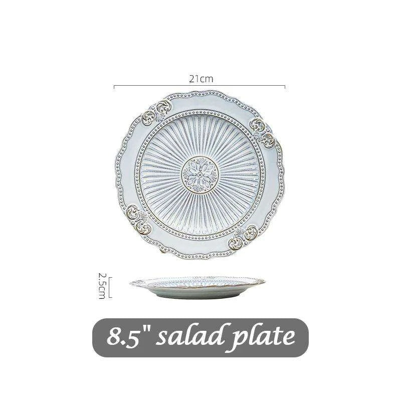 Bring a touch of sophistication and timeless beauty to your dining decor with the Vintage Baroque Embossed Ceramic Plate Collection. Choose this elegant set to transform your dining experience and delight your guests.