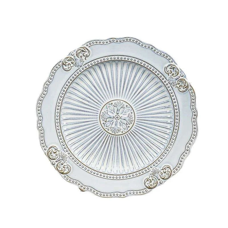 Vintage Baroque Embossed Ceramic Plate Collection - Set of 4 for Elegant Dining