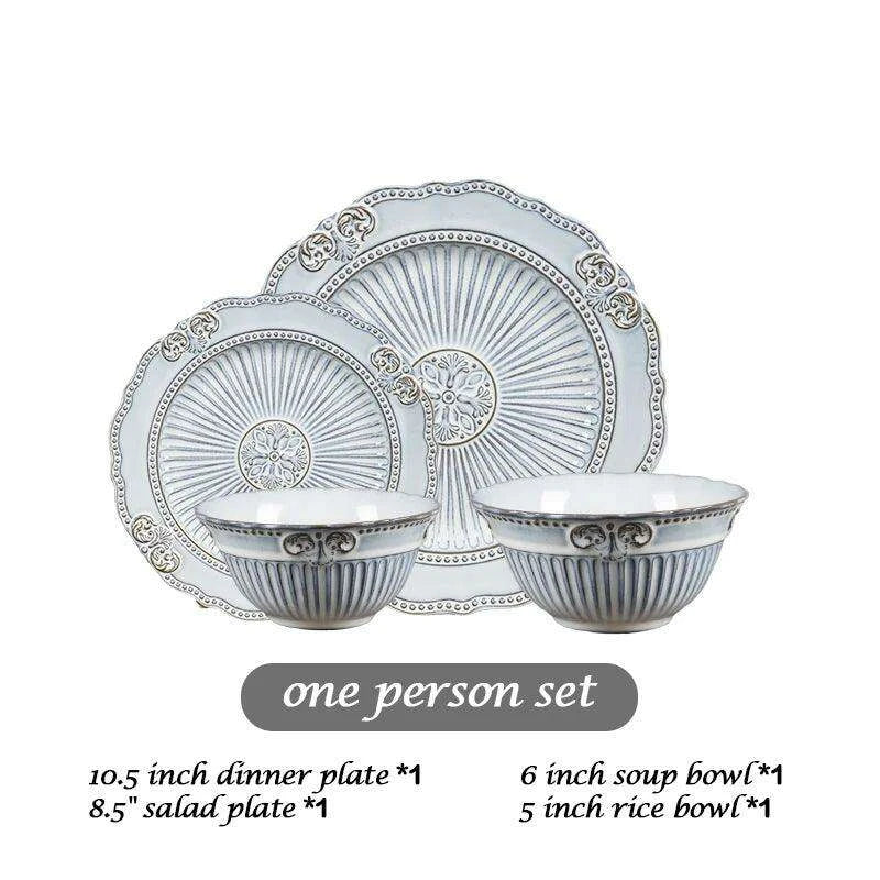 Elevate your dining experience with the Vintage Baroque Embossed Ceramic Plate Collection. This exquisite set of 4 dinner plates is designed to impress your guests and enhance any table setting with its vintage-inspired elegance.