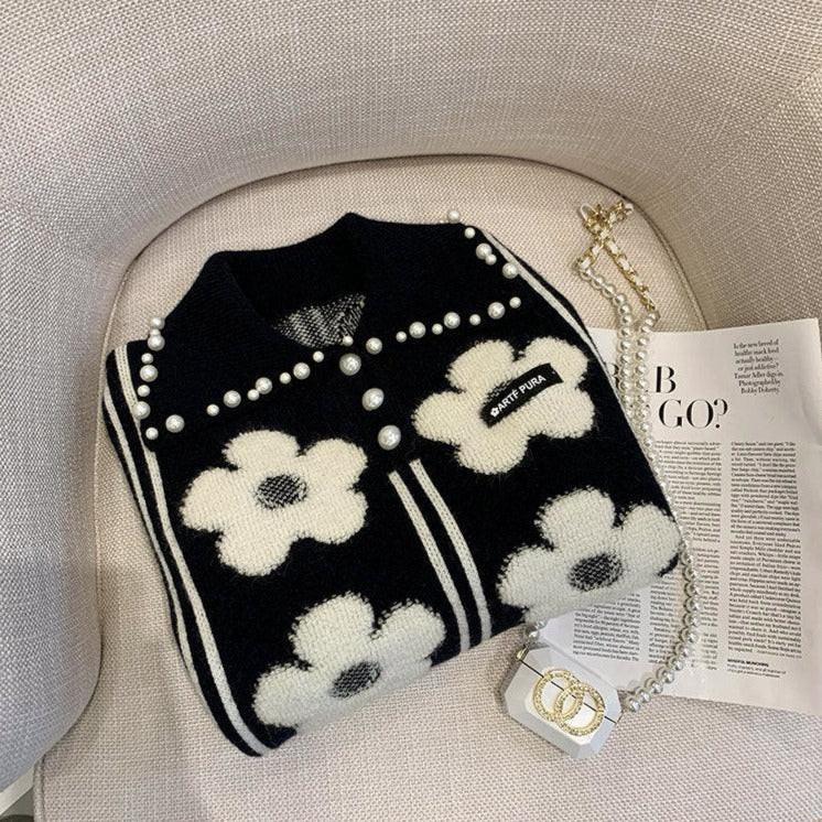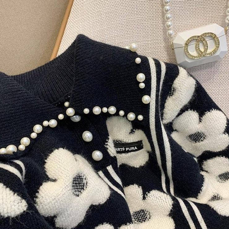 Vintage Pearl-Embellished Knit Pullover - Chic Autumn Sweater for Women