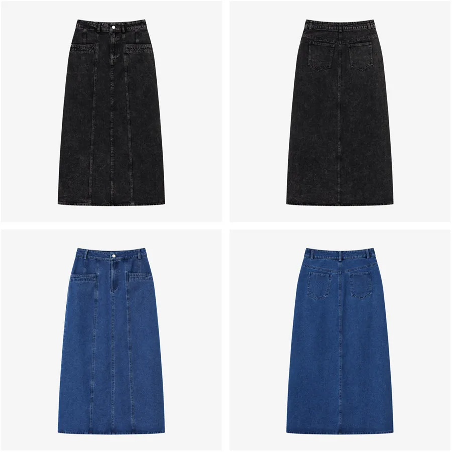 Elevate your wardrobe with the AS AW 2024 Spring Summer Maxi Denim Skirt, a stunning piece tailored for the modern woman who values both fashion and function. This ankle-length skirt is the perfect blend of style and comfort, making it an essential addition for any season.