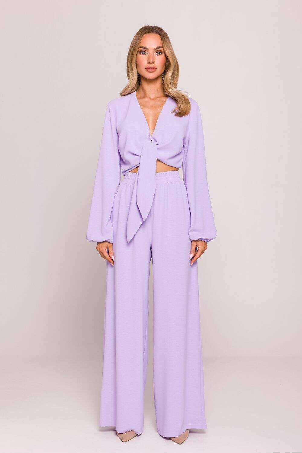 Stylish and comfortable trousers made of lightweight fabric with a distinct crepe texture and a matte finish. The loose fit and wide, long legs provide freedom of movement and a modern look, perfect for both everyday wear and more elegant stylings. The high, elastic waist ensures a great fit and easy wearing without zippers or buttons. The lack of pockets emphasizes the simplicity and lightness of the design. Designed and made in Poland, with comfort and timeless style in mind.