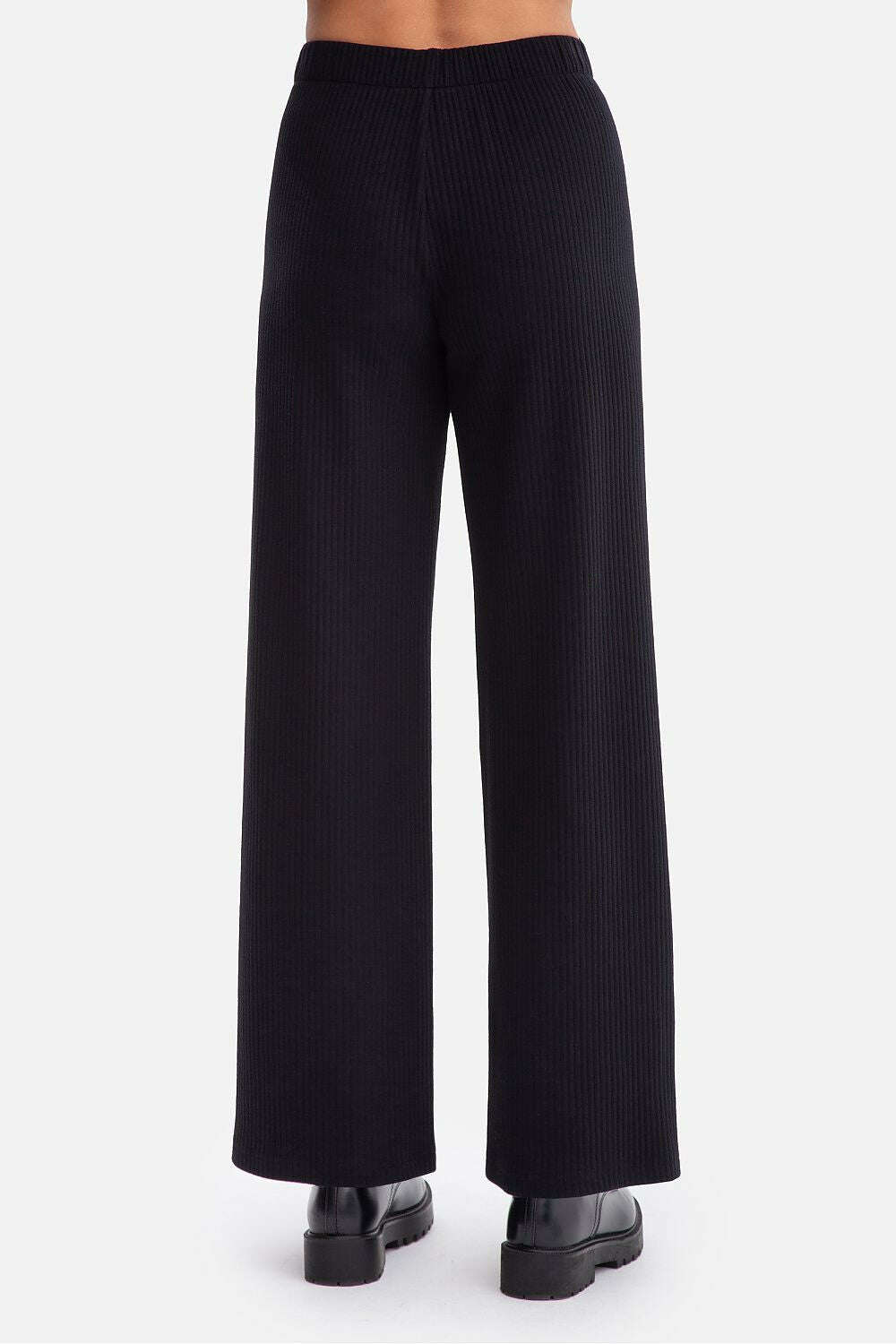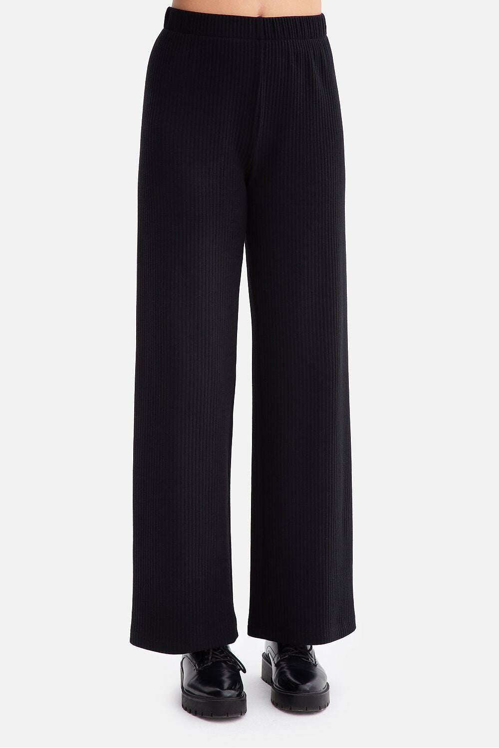 Women's trousers made of ribbed fabric with a weight of 250 g, which is soft, elastic and pleasant to wear. The model without pockets and lining, with a practical elastic waistband, providing comfort and a perfect fit to the silhouette. The loose fit, knitted trousers are fitted at the waist and hips, and then fall loosely, guaranteeing comfort and lightness. Long, straight legs slightly widening towards the bottom slim the silhouette and add elegance to the whole. The mid-rise makes the trousers fit well and emphasize the waist, and the full length to the ground gives them a modern, leg-lengthening effect. Designed and made in Poland from fabric produced in Łódź, it is a combination of comfort, quality and timeless style.