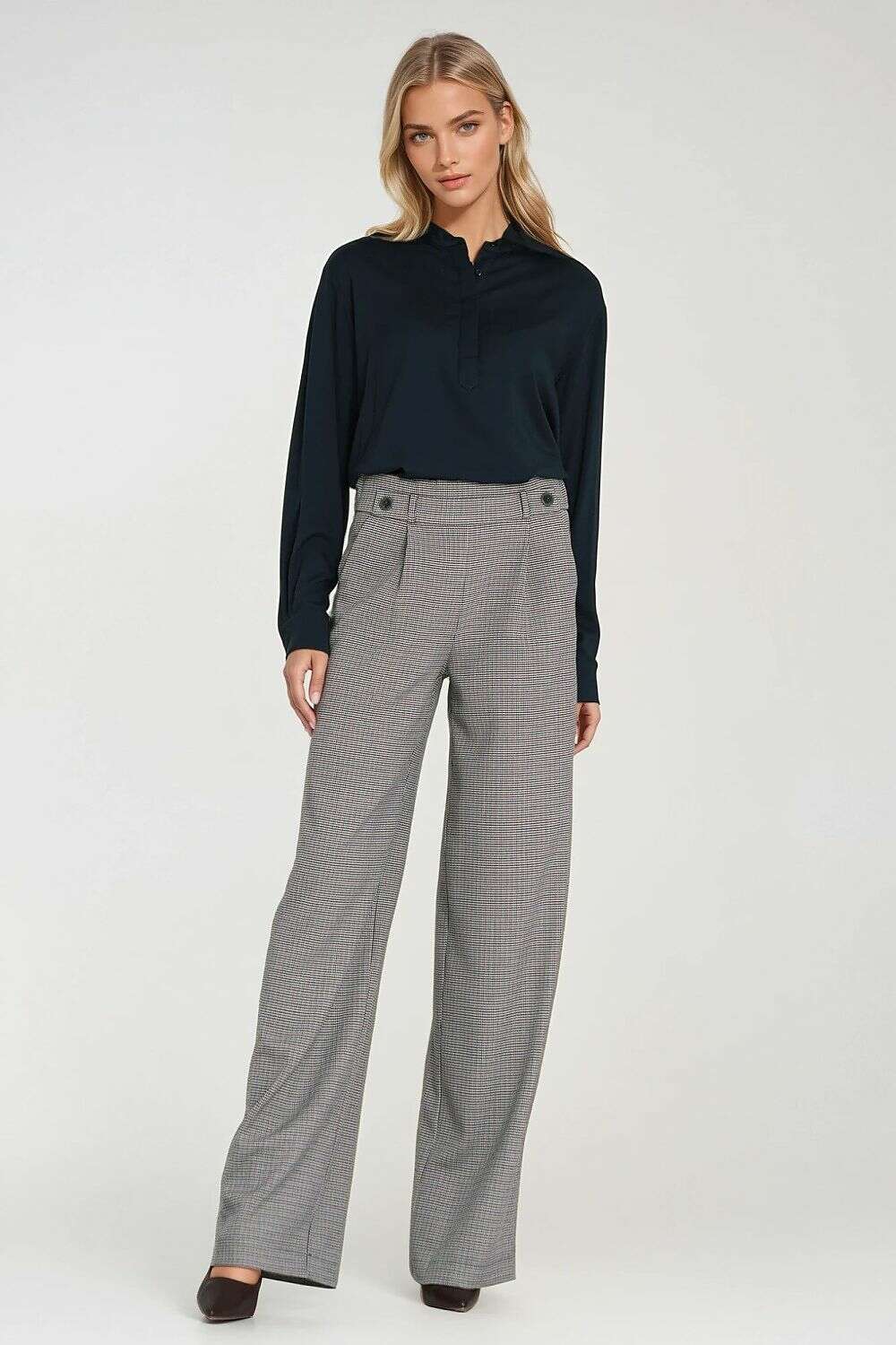 Step into effortless elegance with these Womens Wide Leg Trousers featuring a high waist, pleated front, and a relaxed fit. The fabric’s non-uniform color adds a distinctive character to each pair, while the cut creates a light, elongated silhouette that moves with you. A comfortable elastic band at the back of the waist ensures a precise, flattering fit, day after day.