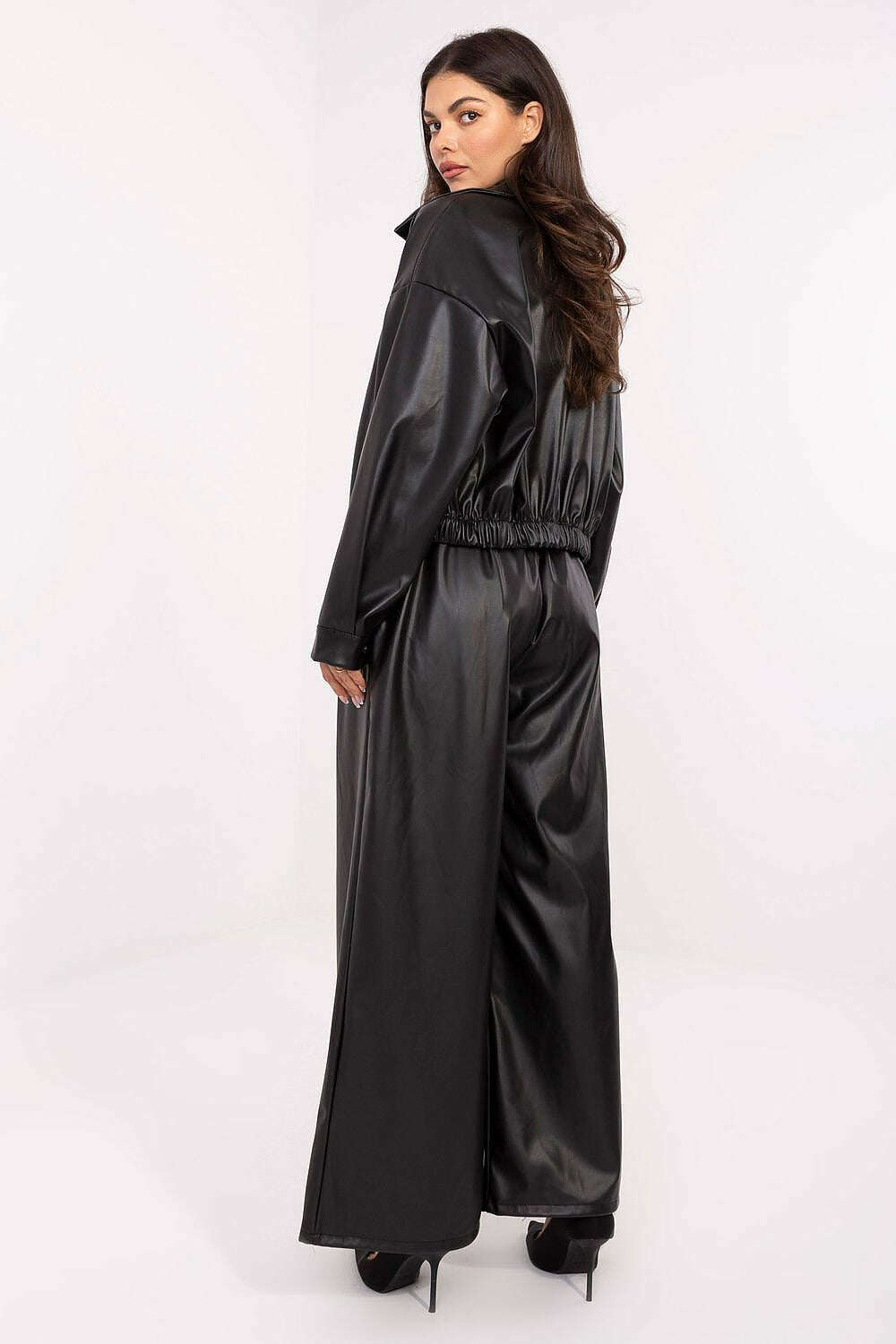 Step into effortless elegance with Women Eco Leather Palazzo Trousers Elastic Waist. This modern palazzo silhouette combines sustainable faux leather with a luxurious drape, giving you a chic, minimalist look that moves with you throughout the day.