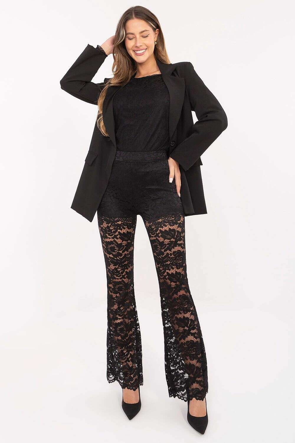 Women Lace Bell Bottom Pants with High Waist and Elastic Band deliver timeless elegance with a distinctly feminine character. Crafted from a lightweight polyester-elastane-viscose blend, these pants feel soft to the touch, stay comfortable all day, and glide with your movements. The high waist features an inserted elastic band to guarantee a perfect silhouette, while the wide bell-bottom legs add lightness and a chic, fashion-forward look.