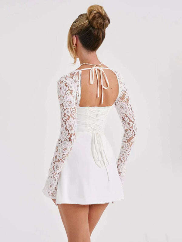 Women's Sexy Lace Slim Fit Backless French Long Sleeve Dress