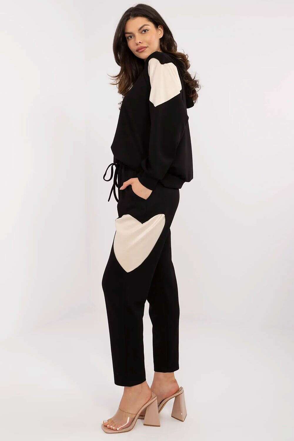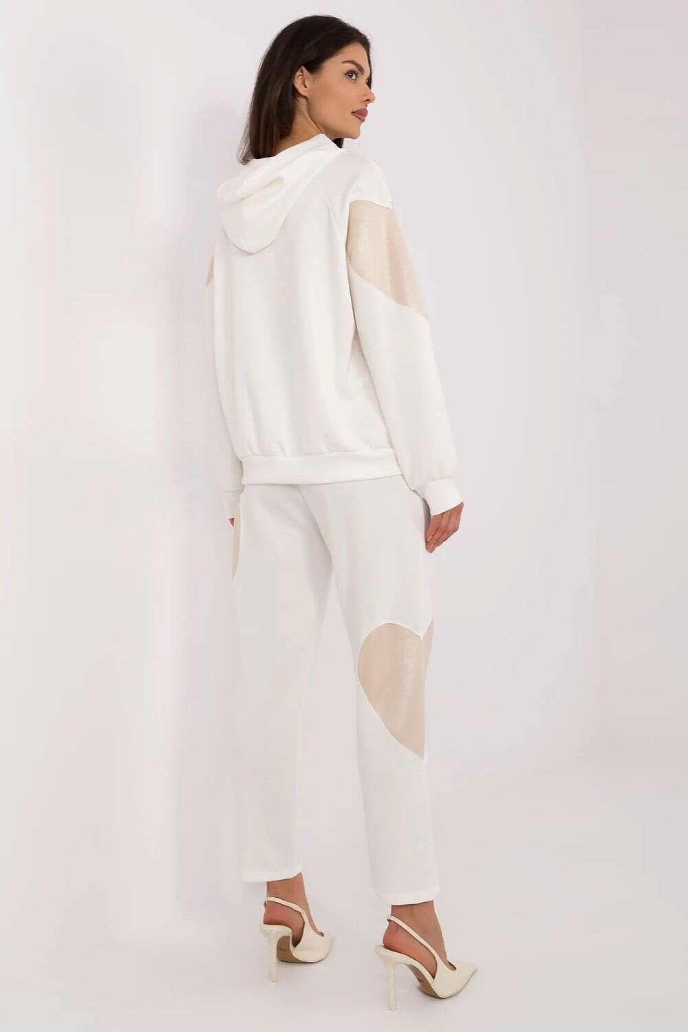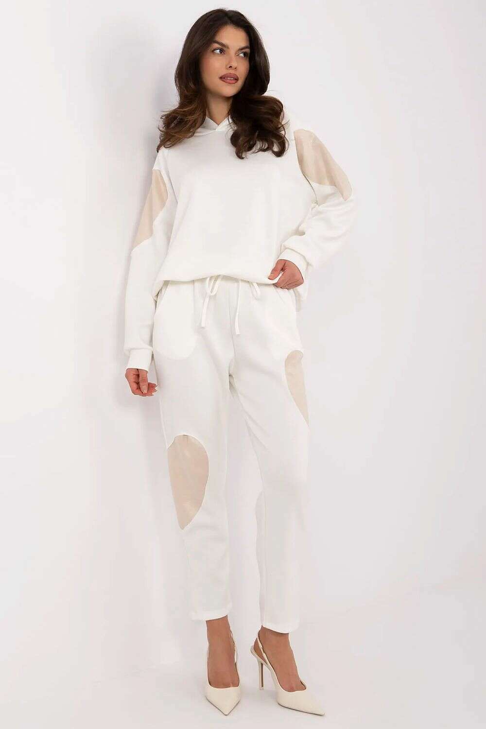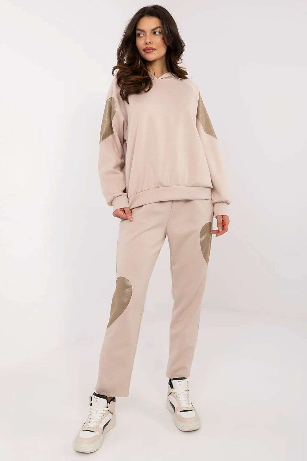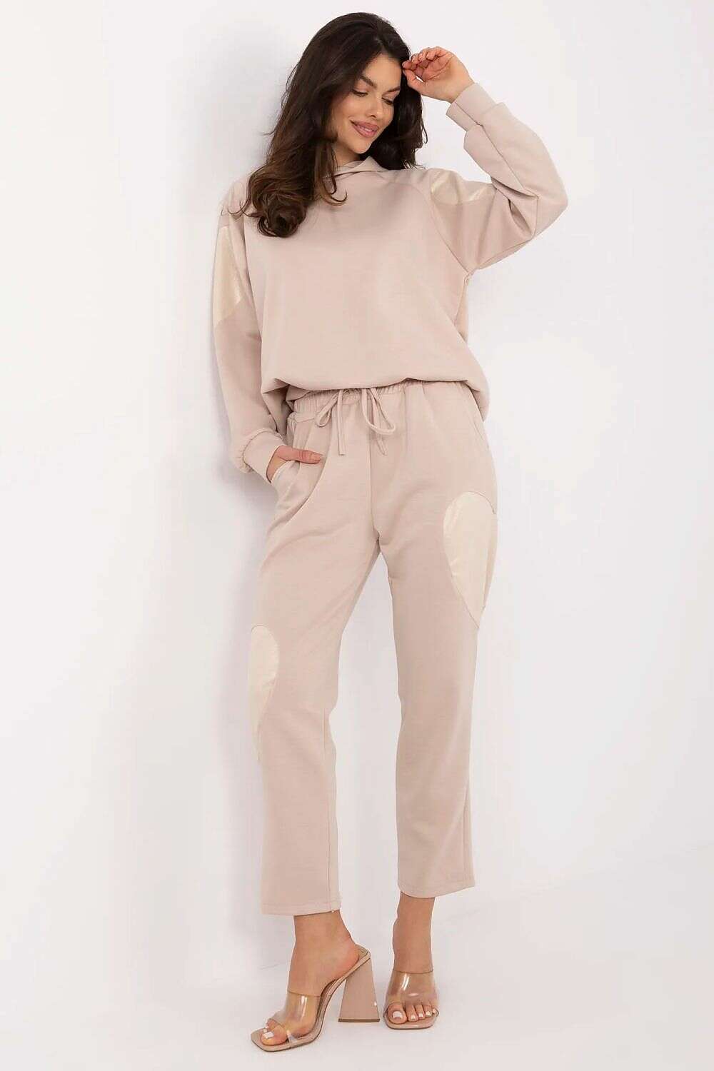 Set model 209203 offers a practical blend of comfort and style for everyday wear. This women's tracksuit set combines a cozy hoodie with high-waisted pants, designed to fit the silhouette with a minimalist, versatile look.