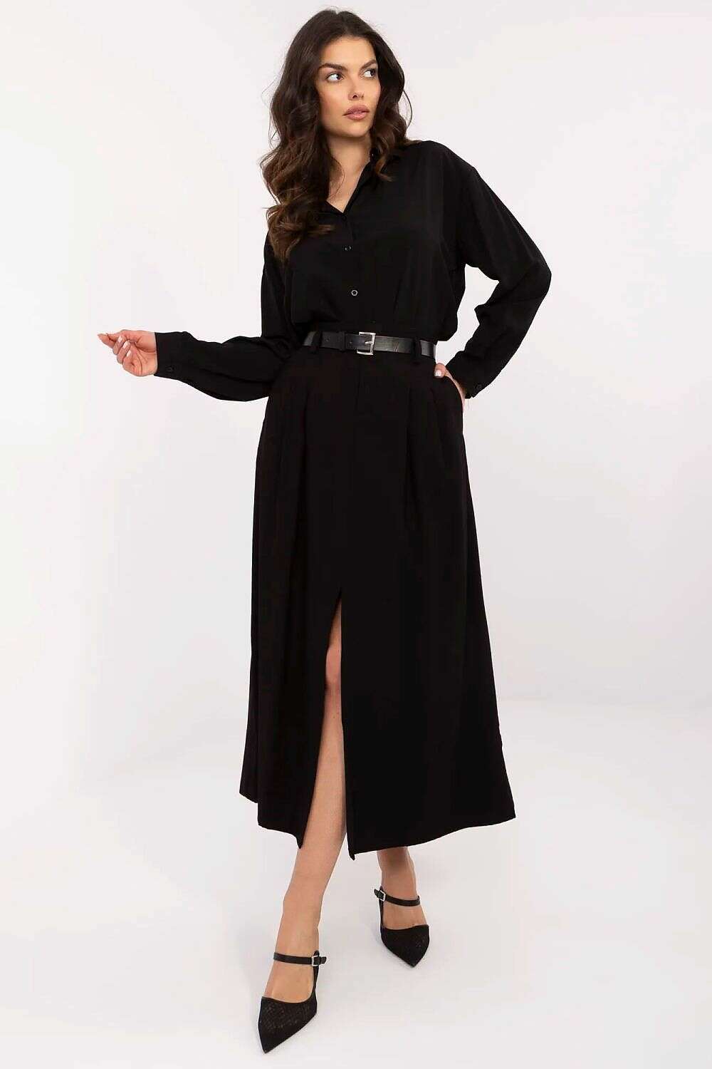Elegant and stylish midi skirt, perfect for everyday wear, work, and formal occasions. Made of a blend of viscose and polyester, it provides comfort and beautiful draping of the fabric. The smooth pattern gives it a universal character, making it easy to match with different stylings. Decorative pleats on the front add subtle elegance, and the side pockets combine functionality with a trendy look. The skirt is fastened with a zipper, and an additional advantage is the fastened belt that emphasizes the waist. This timeless model will work perfectly in both casual and more formal outfits.