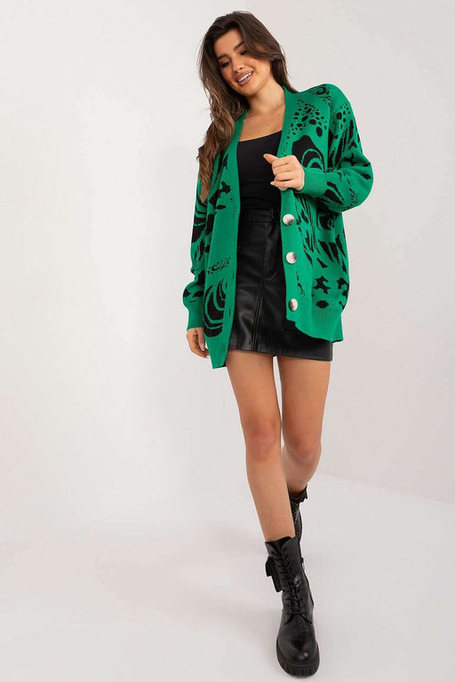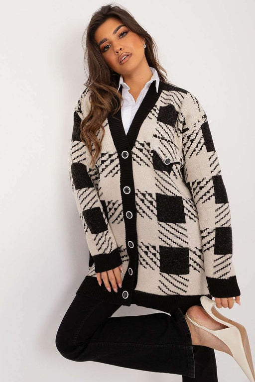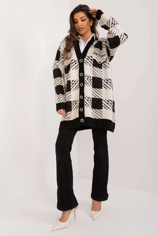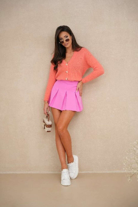 A short women's sweater is a stylish and versatile option for any occasion. Made of soft, pleasant to the touch knitwear, it ensures comfort throughout the day. The classic cut with long sleeves and a V-neck subtly emphasizes the silhouette, adding elegance to the whole. The sweater fastened with buttons allows for various styling options, it can be worn solo or as a cardigan over a top or shirt. It pairs perfectly with both jeans and skirts, creating fashionable and feminine outfits.