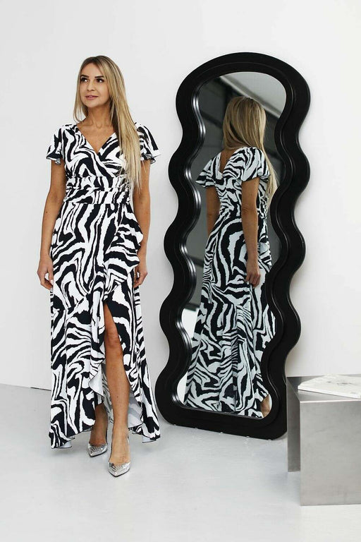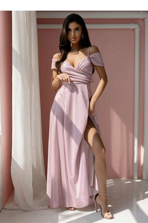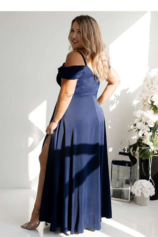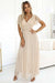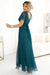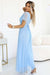 Fall in love with lightness and femininity! This long dress in a shade of blue is the perfect choice for spring, summer, and special occasions. Made of elastic mesh, which beautifully shapes the silhouette and gently moves with the body. The wrap neckline, subtle transparent sleeves, and tie at the waist add a touch of romance and class to the outfit. The dress looks light and elegant at the same time, perfect for weddings, communions, summer parties, or a date.