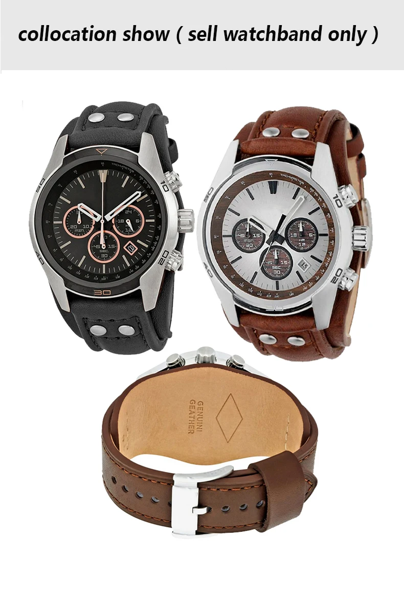 Bracelet de montre en cuir véritable pour Fossil CH2564 CH2565 CH2891CH3051, bracelet de montre à plateau noir et marron de 22mm avec style rivet