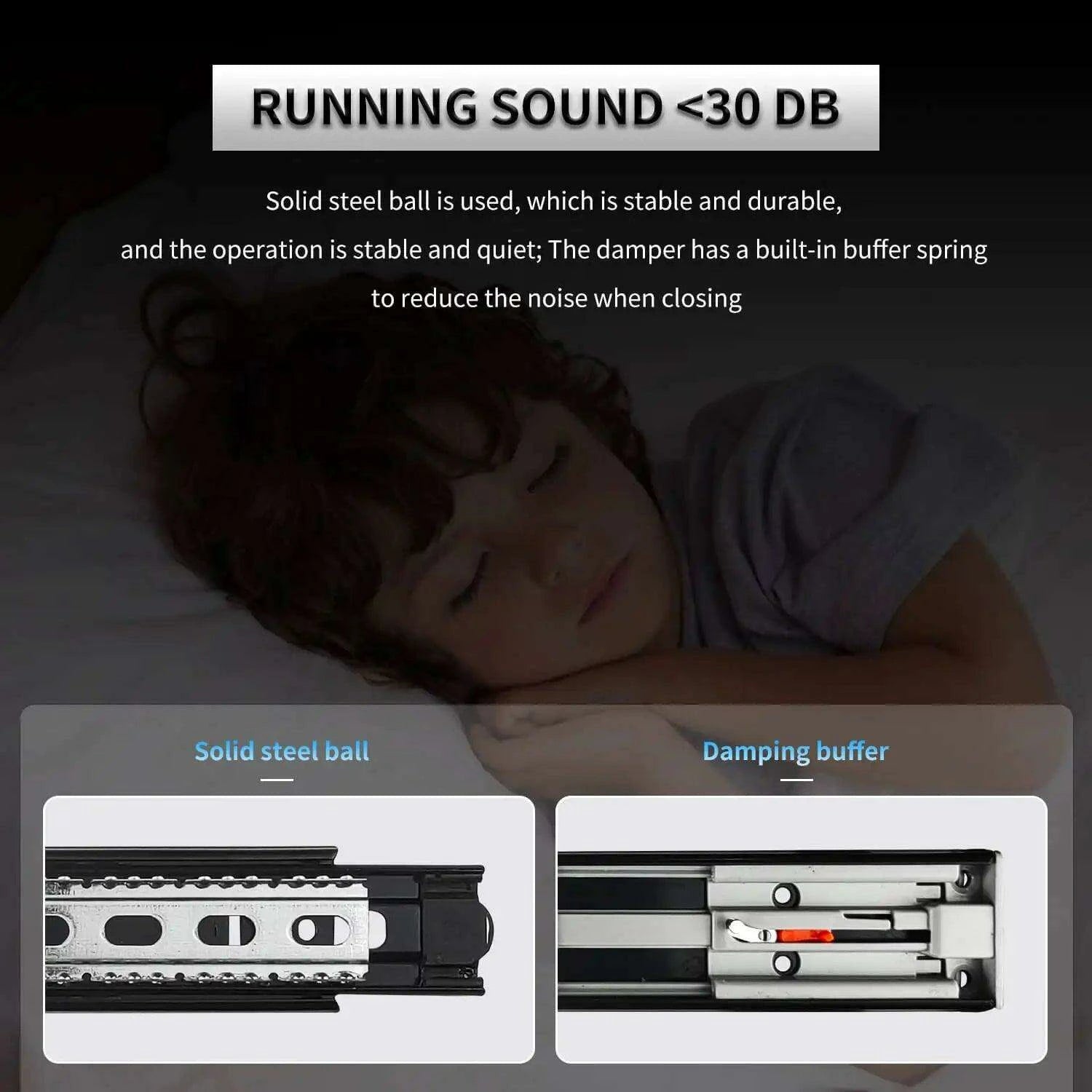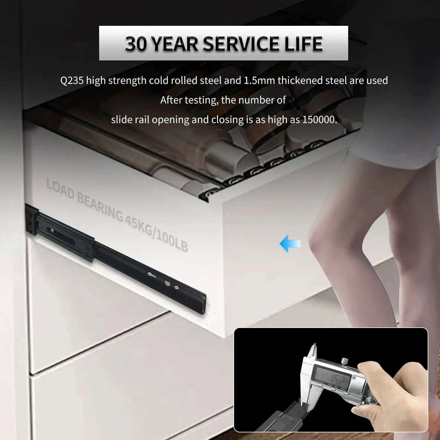 • High Load Bearing: Built from robust 1.2mm thick galvanized steel, these slides can support up to 100 lbs, ensuring your drawers can accommodate even the heaviest items.