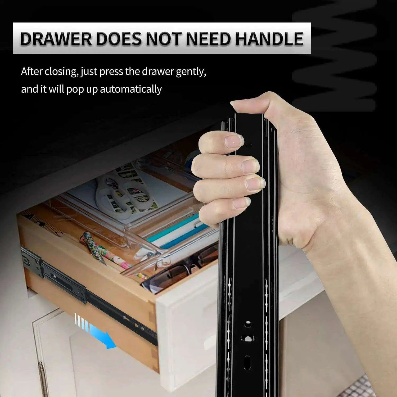 Transform your cabinetry experience with our 24" Heavy-Duty Push-to-Open Drawer Slides, meticulously crafted for those who value both durability and convenience. Made from premium galvanized steel, these slides are the perfect addition to your modern home.