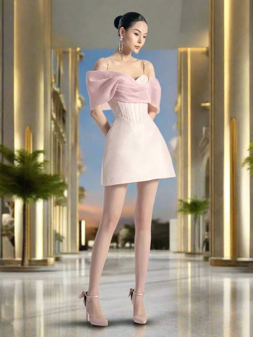 A-line Summer Mini Dress with Shawl & Zipper for Women's Evening