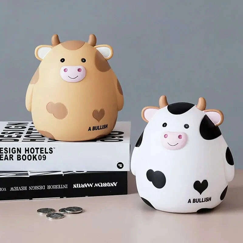 Transform the art of saving money into a delightful experience with our Cartoon Cute Cows Shaped Piggy Bank. This charming money box is not just a practical tool for your child's savings; it also serves as a whimsical decor piece that brightens any space.