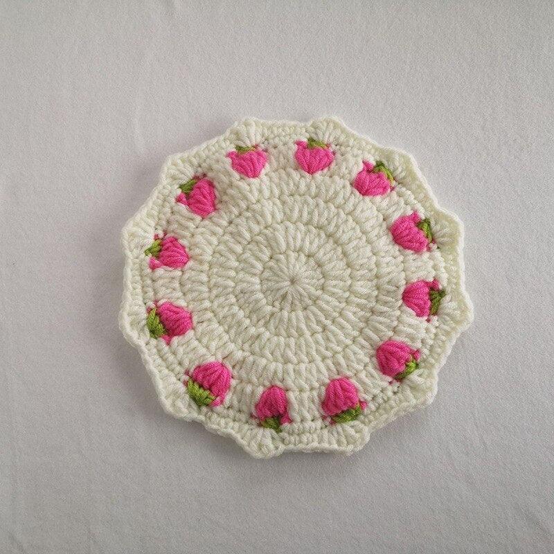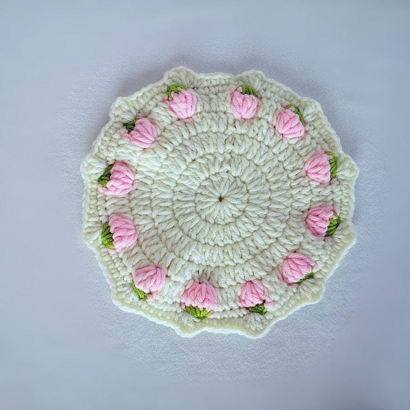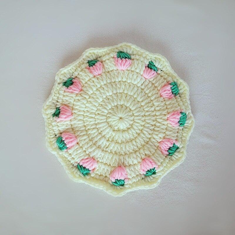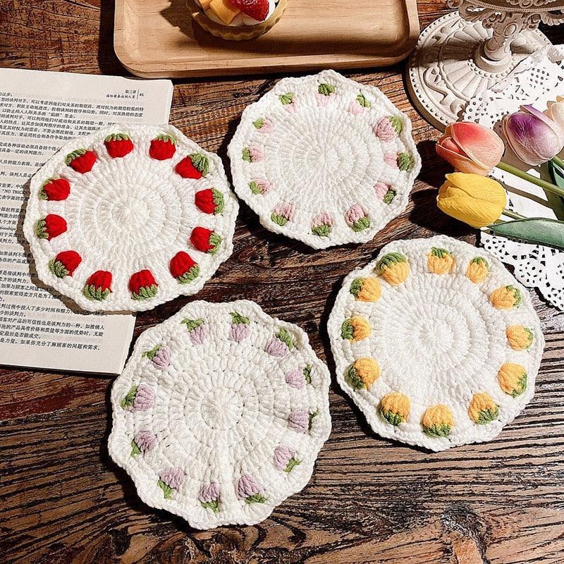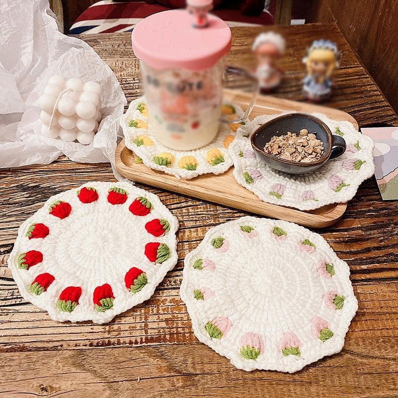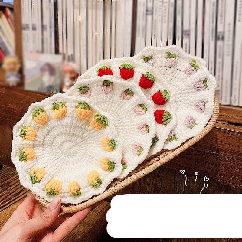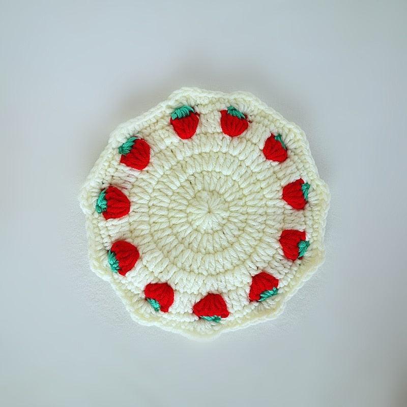 Adorable Strawberry Knit Coaster Set - Whimsical Table Protector and Home Decor Essential