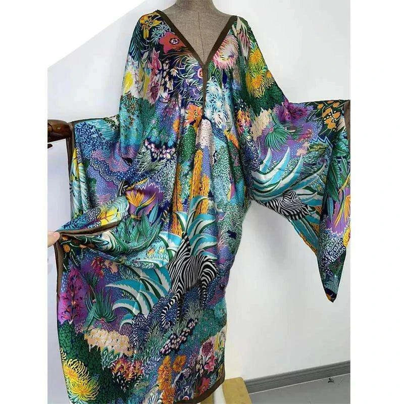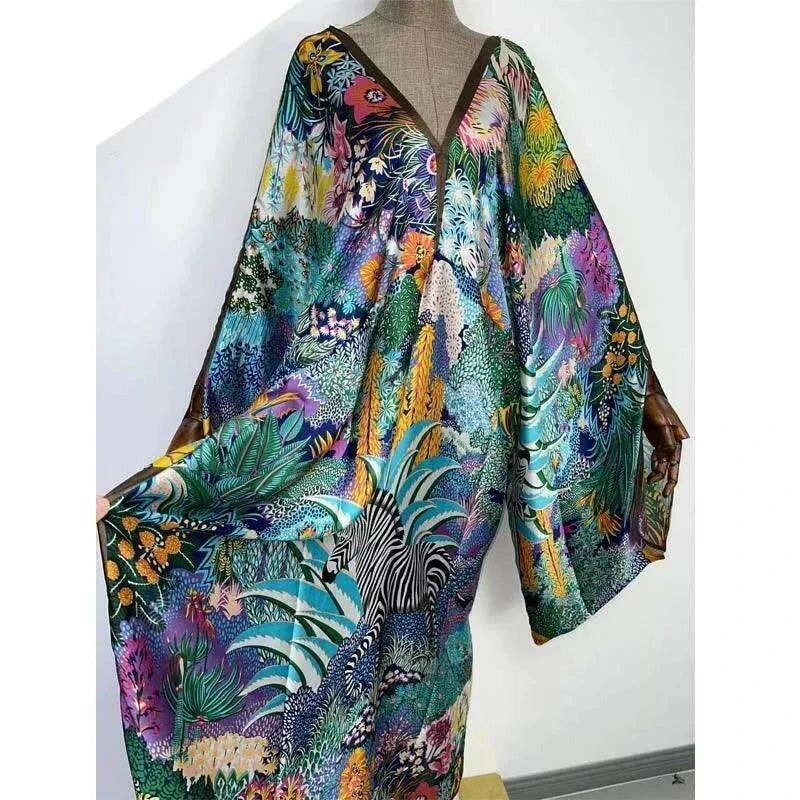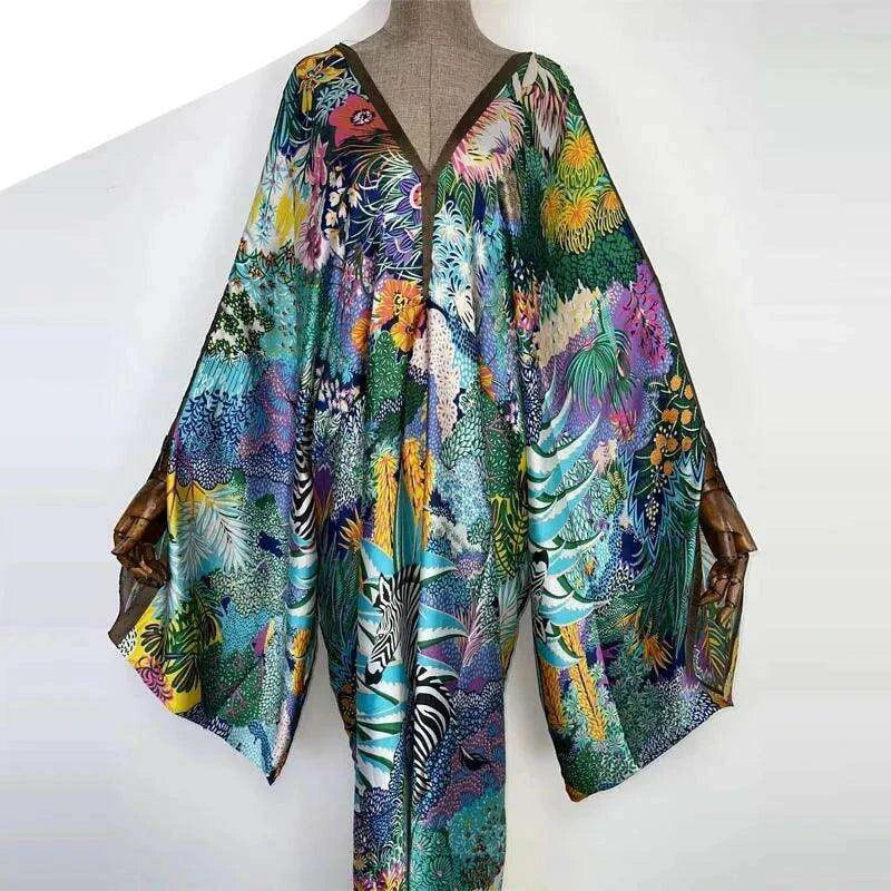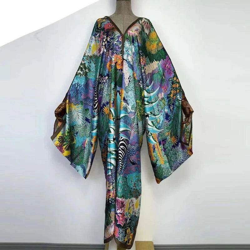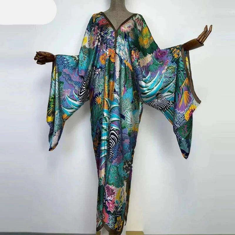 Boho Maxi African Holiday Batwing Sleeve Robe soyeuse pour femmes | Collection Automne Africain