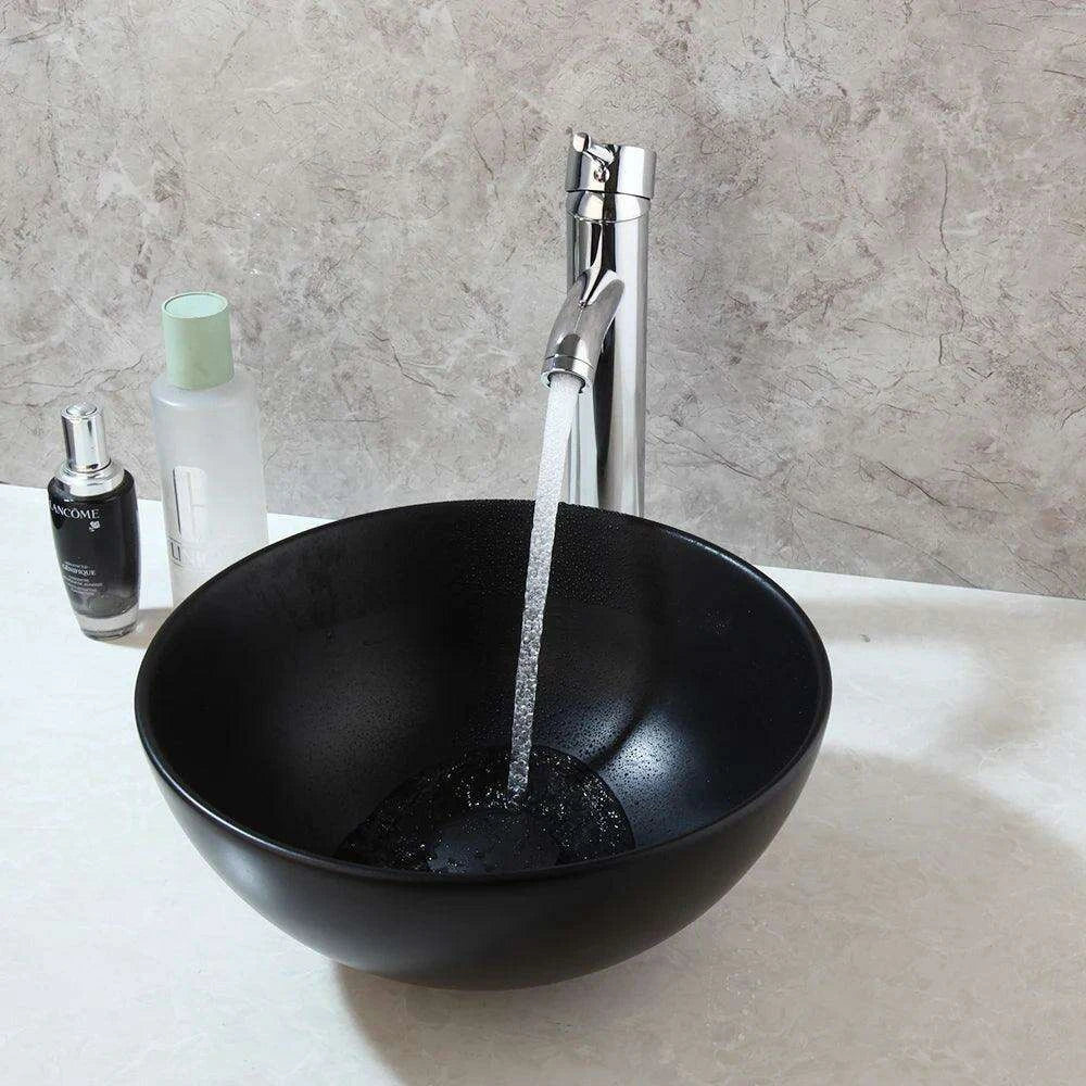 Artisan Hand-Painted Tempered Glass Sink Ensemble with Modern Chrome Faucet..