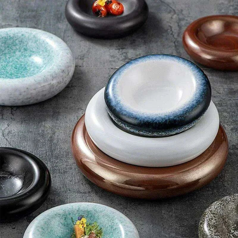 Artisan Japanese Ceramic Dinner Plates Set with Unique Artistic Patterns for Gourmet Dining